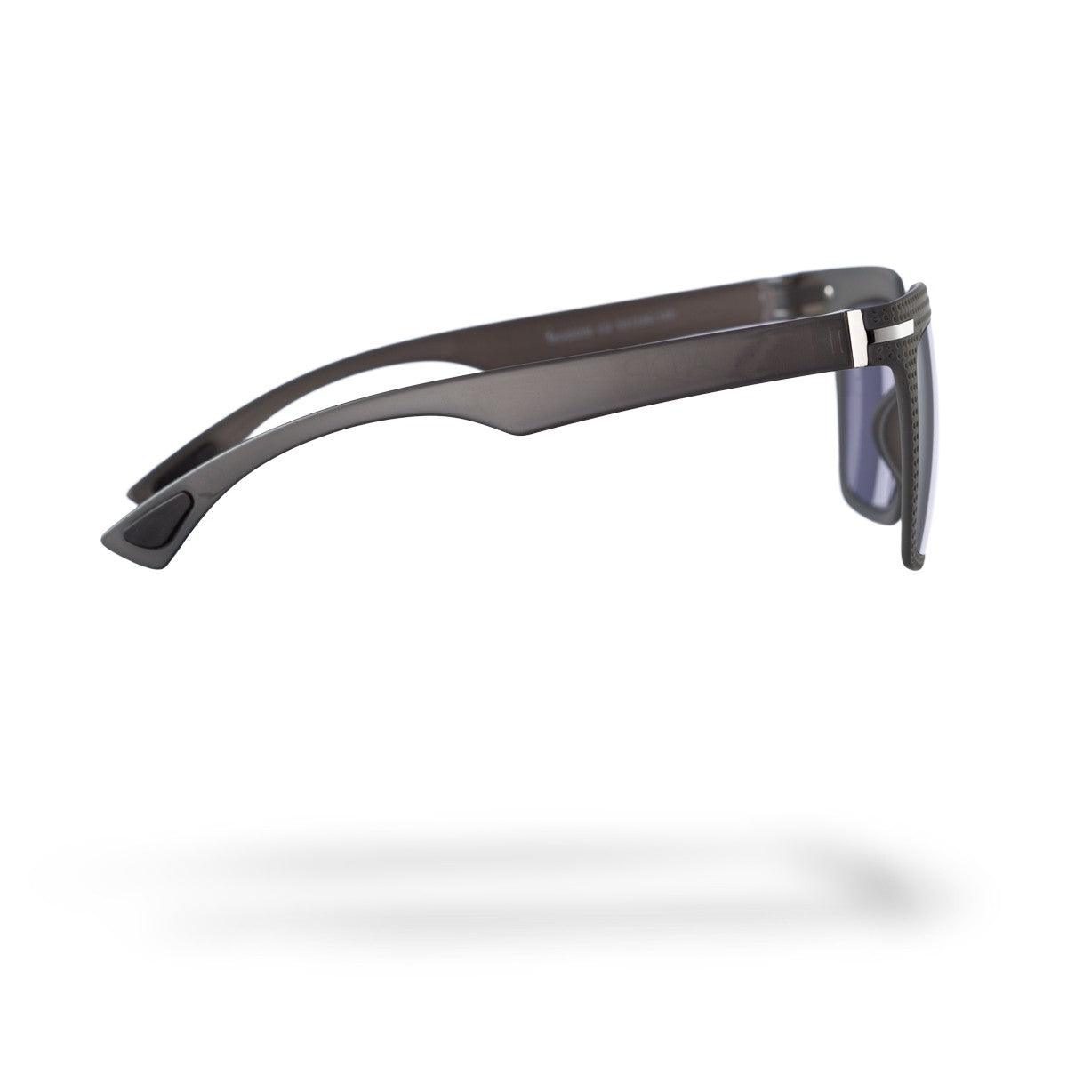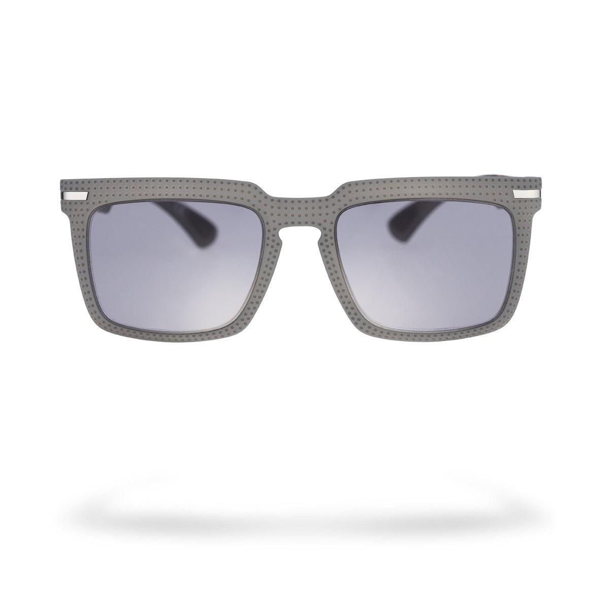 Cava, un gioco di luci e ombre creato dalla texture geometrica, con un effetto tridimensionale nel frontale dell'occhiale, ottenuto grazie a spessori variabili che conferiscono profondità e carattere.