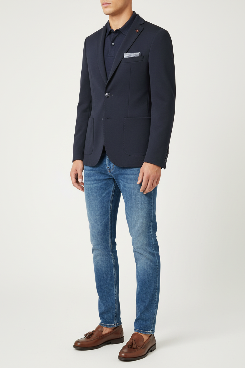 Questa giacca elegante è perfetta per ogni occasione. Dotata di una pratica pochette da taschino, ti permette di portare con te le tue essenziali in modo discreto e chic. La giacca è il must-have per chi vuole essere elegante senza rinunciare alla comodità.