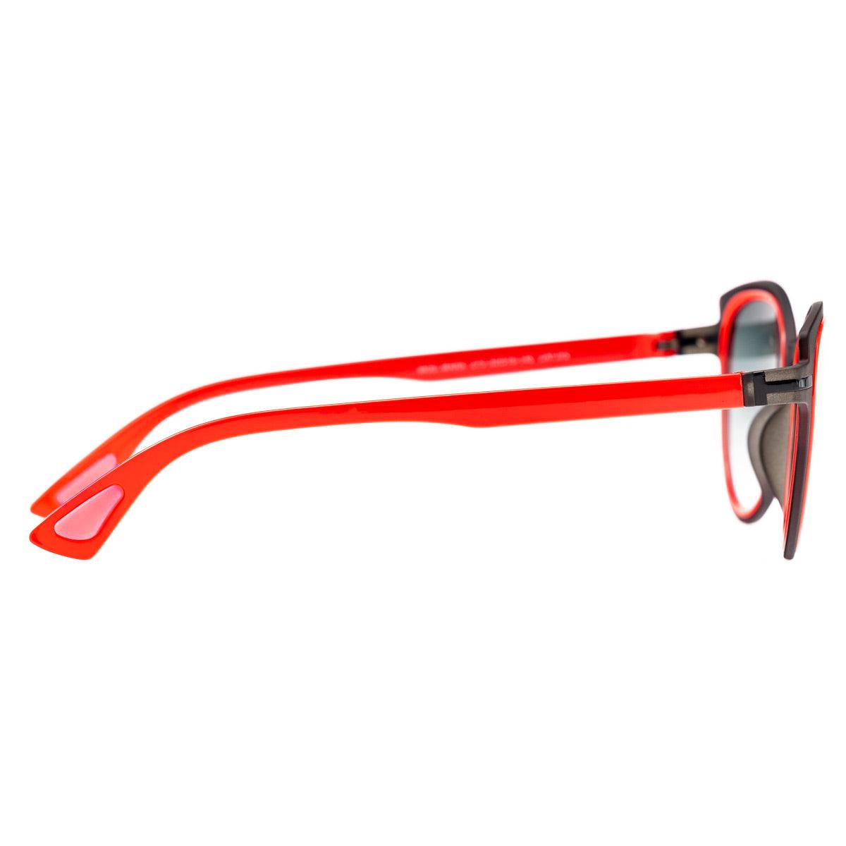 Il frontale grigio soft touch crystal con dettagli rossi si abbina alle aste rosse, creando un look originale e contemporaneo. Le lenti fotocromatiche grigie si adattano alla luce, garantendo protezione e comfort visivo in ogni condizione.