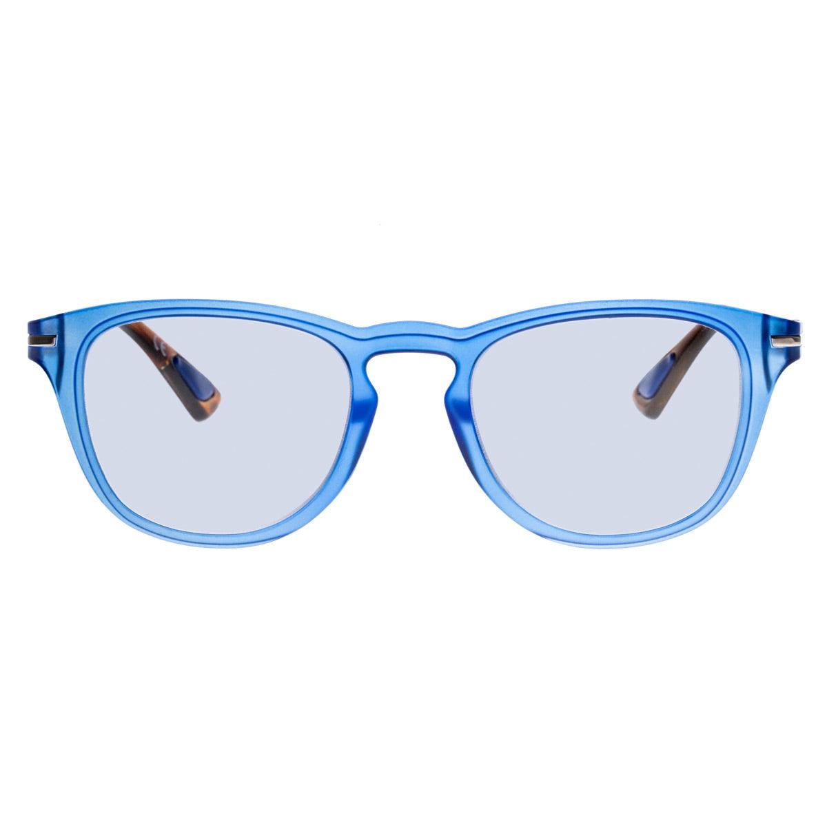 Il frontale azzurro si combina con le aste color avana e i terminali blu, creando un mix armonico di tonalità che dona eleganza e modernità. Le lenti grigie fotocromatiche si adattano alle condizioni di luce, offrendo protezione e comfort visivo in ogni situazione.