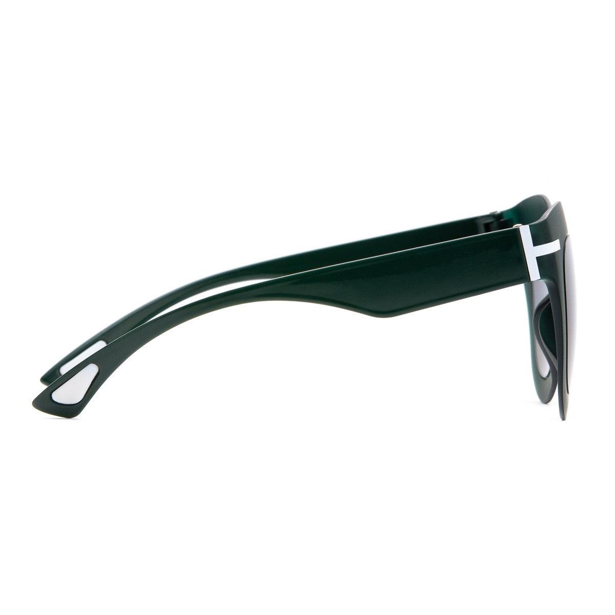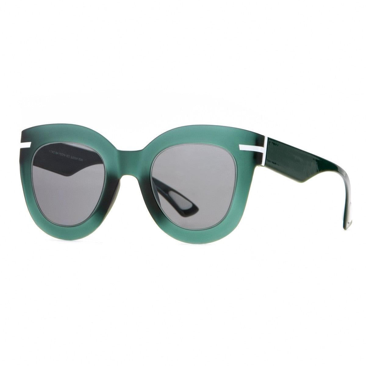 Il frontale verde soft touch crystal e le aste verde più scuro lucido creano un gioco cromatico sofisticato, mentre le lenti da sole specchiate grigie offrono una protezione ottimale, conferendo un tocco di modernità all’occhiale.