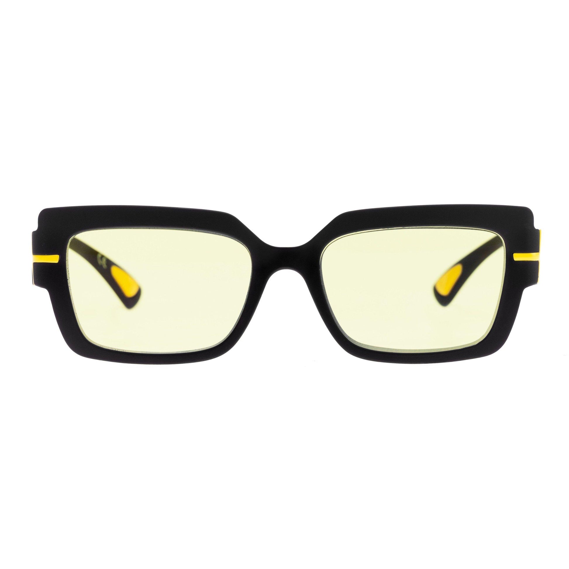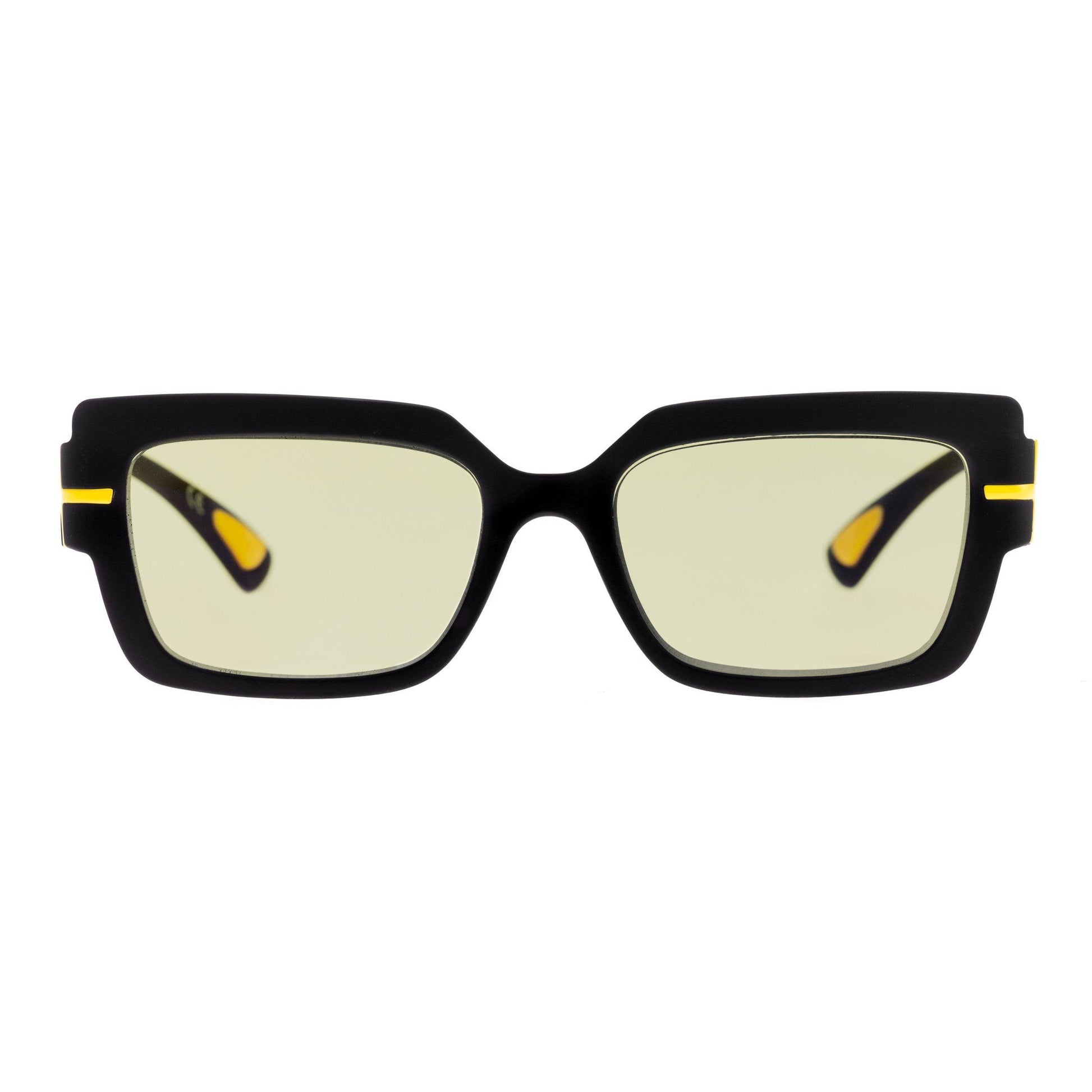 Modello da donna della Collezione Over, SCARLETT C3 esprime personalità con la sua forma rettangolare oversize e un design che non passa inosservato. Il frontale e le aste in nero soft touch creano un look grintoso e sofisticato, esaltato dal tlogo giallo, vivace e distintivo.