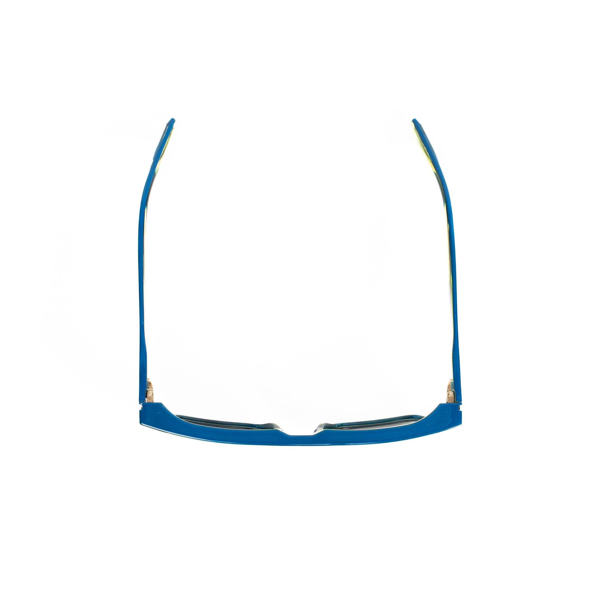 Il frontale e le aste verde chiaro trasparente, uniti al top blu, creano un contrasto fresco e vivace, ideale per chi cerca un occhiale dallo stile unico e ricercato. La combinazione di trasparenze e dettagli metallici conferisce al modello un aspetto contemporaneo e leggero, perfetto per chi desidera un accessorio che si faccia notare senza essere troppo invasivo.