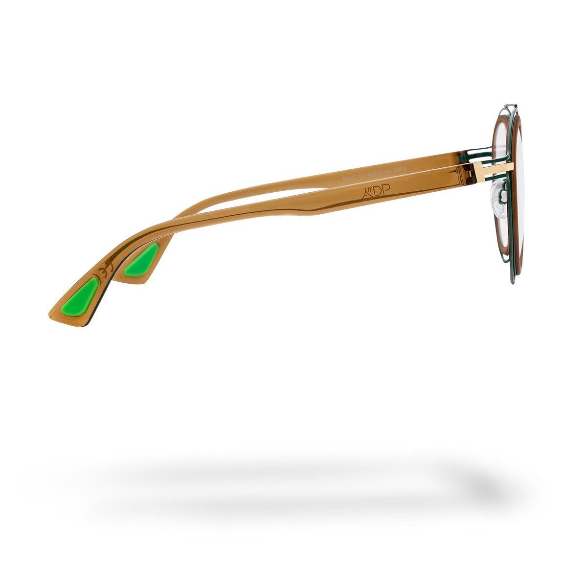 Il modello Tahiti C4 della collezione Metal è un’interpretazione moderna e sofisticata delle forme eleganti e raffinate. Il frontale verde chiaro lucido conferisce un tocco di freschezza, mentre le aste marrone lucido e crystal creano un contrasto interessante che valorizza l’estetica complessiva.