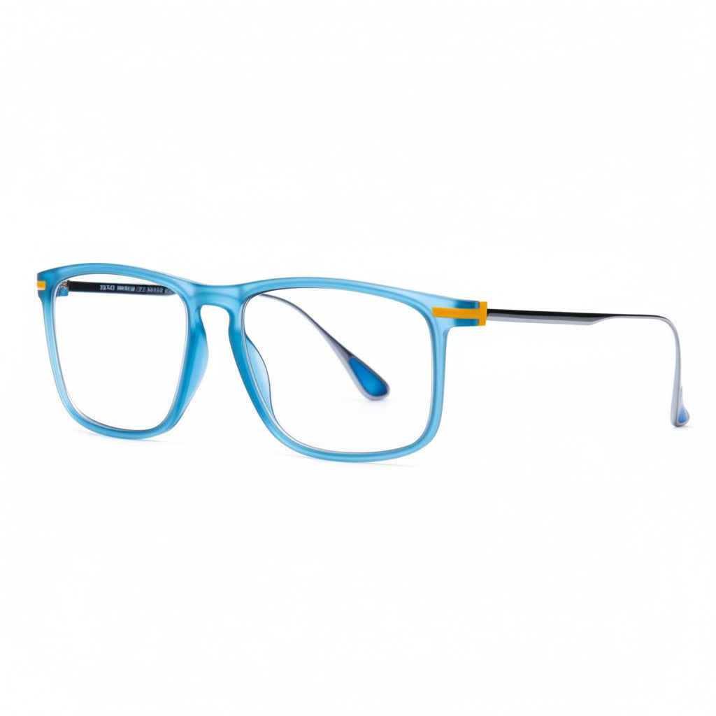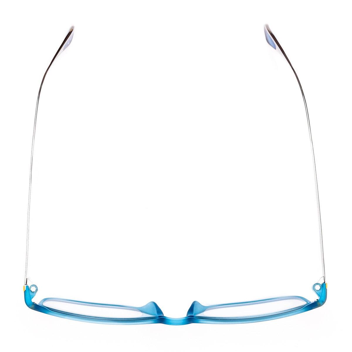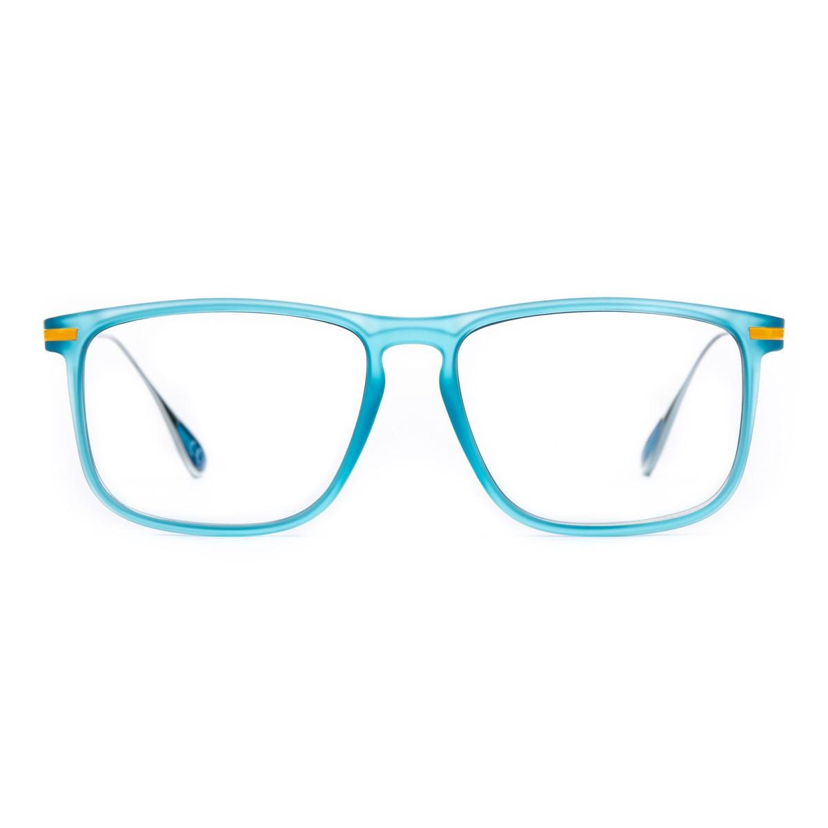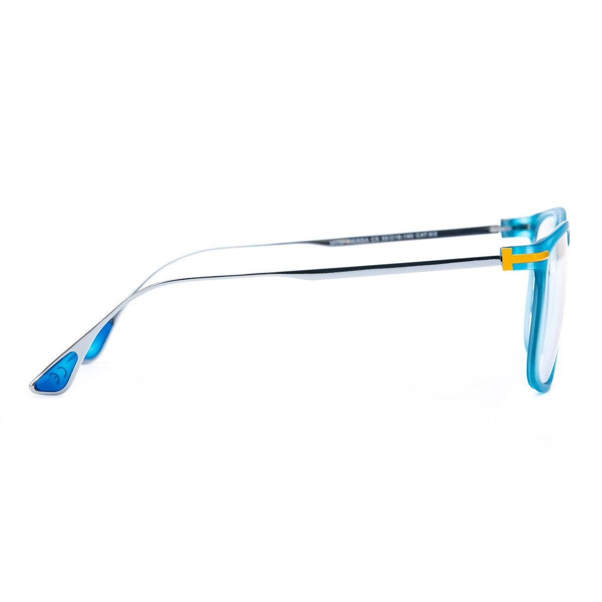 La forma rettangolare, pensata per l’uomo moderno, è valorizzata da un frontale blu soft touch in crystal, che dona trasparenze raffinate e un’estetica contemporanea. Le aste grigio lucido in titanio garantiscono solidità e flessibilità, mentre le lenti blu fotocromatiche si adattano alla luce per un comfort visivo ideale. Il Tlogo arancione aggiunge un dettaglio grafico distintivo.