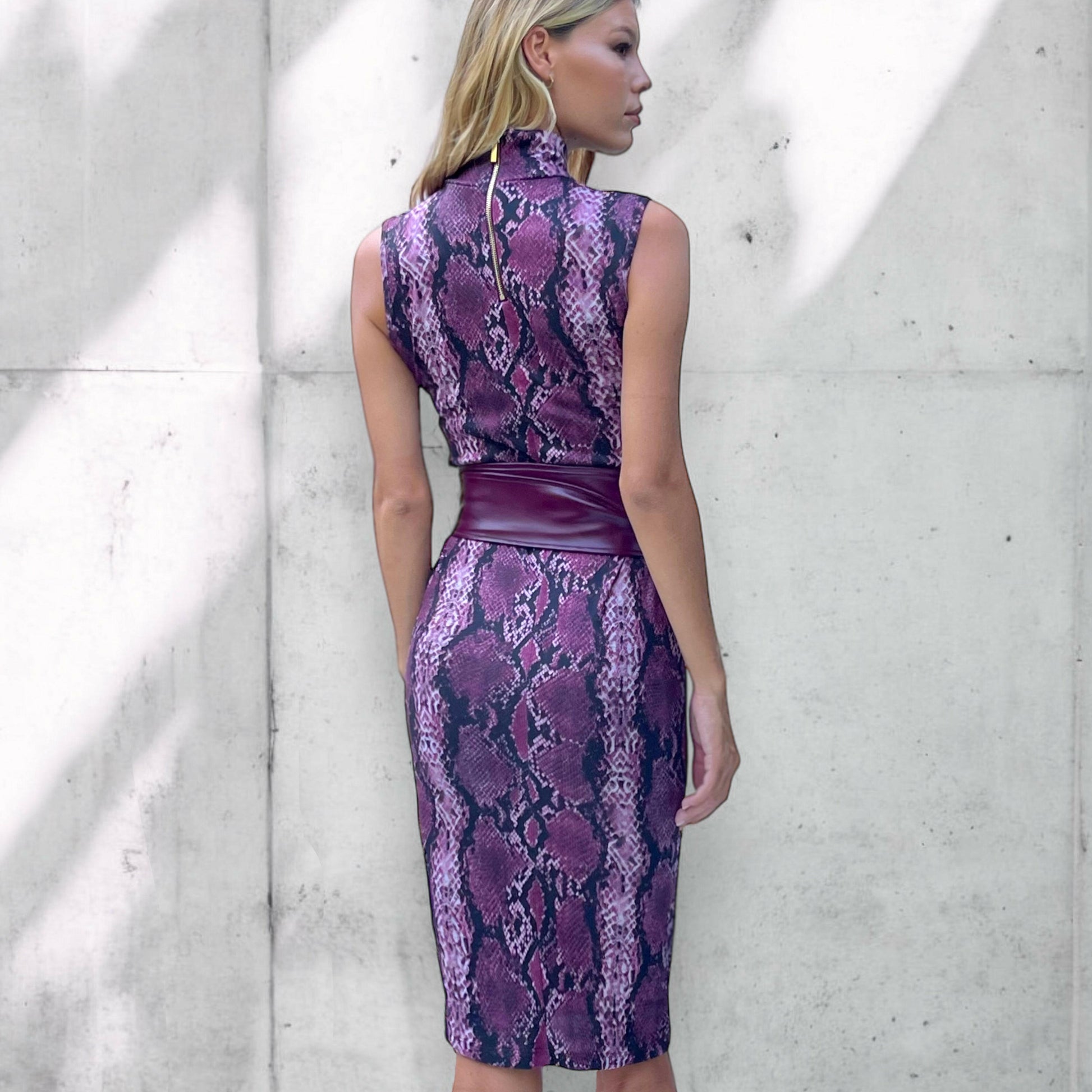 Il Tubino Collo Alto Pitone Bordeaux è un capo che unisce comodità e grinta. Con il suo disegno animalier esclusivo, è uno dei simboli di stile e raffinatezza. Fatto per una donna che vuole essere notata e ammirata, è l'abito perfetto per ogni occasione.
