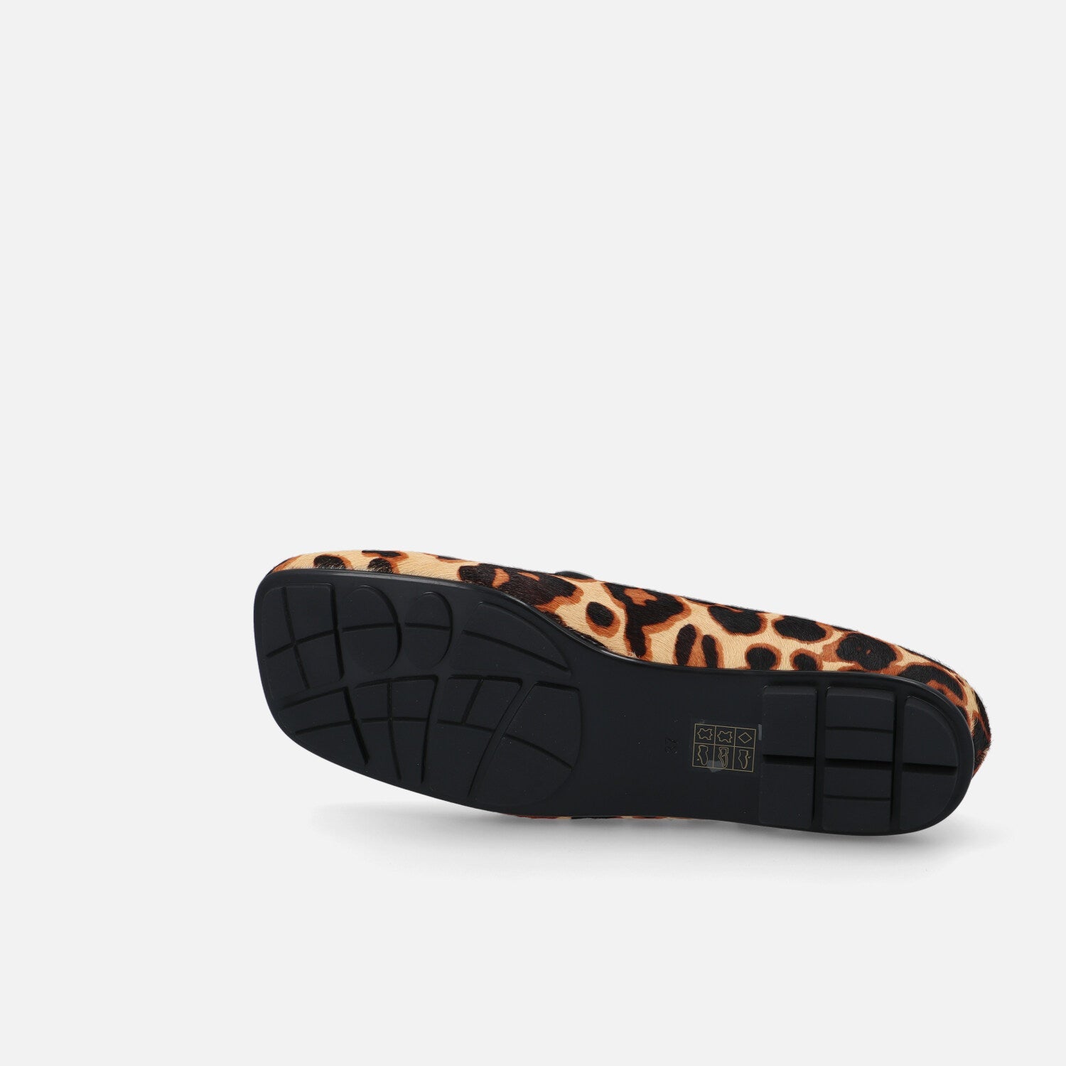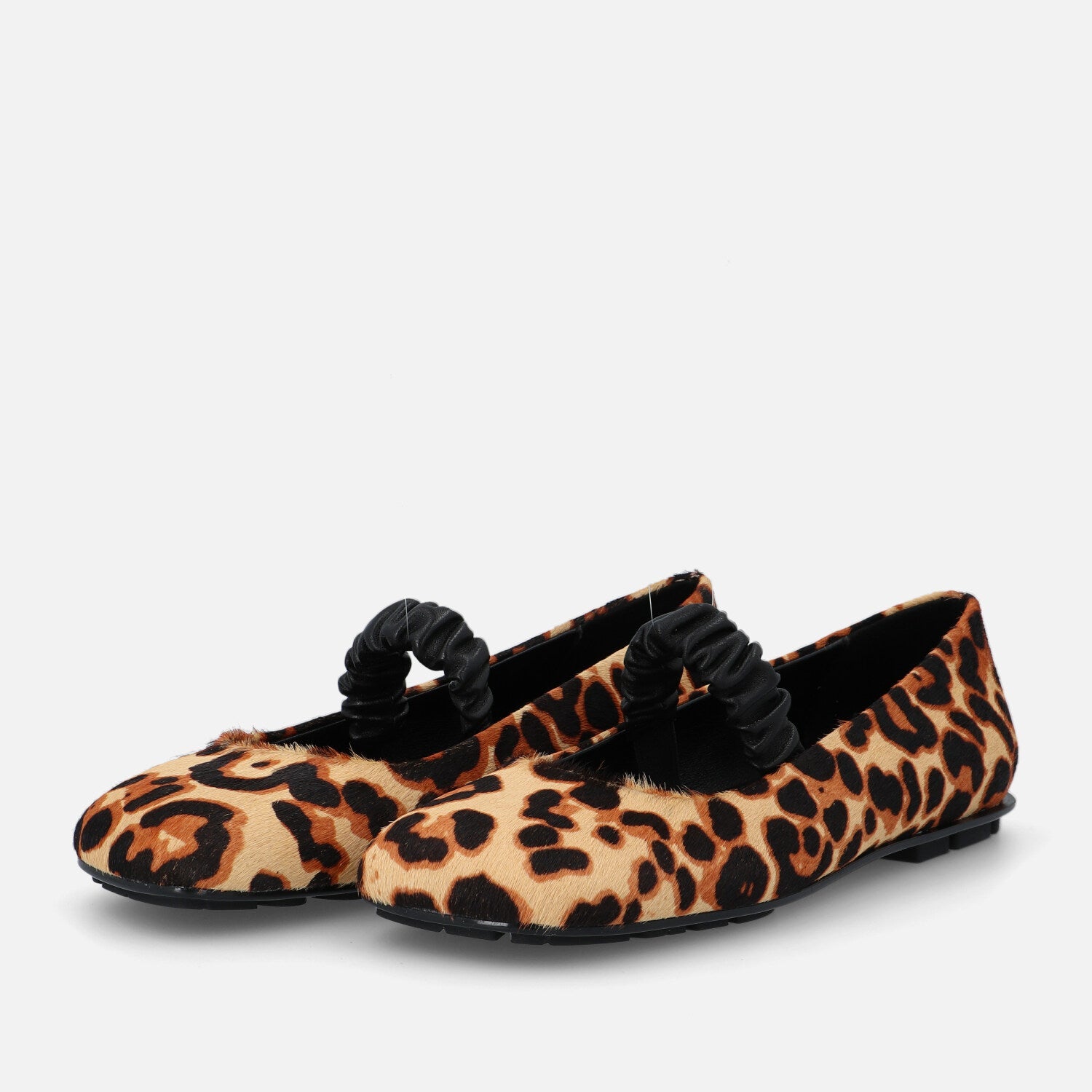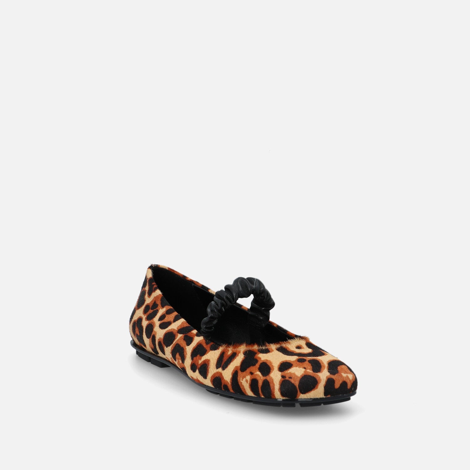 Baer Stra è una ballerina a punta squadrata in cavallino con stampa leopardata che esprime una personalità audace e sofisticata. La tomaia in pelliccia effetto pony è decorata da un pattern animalier dai toni caldi, che dona grinta e carattere al modello. Il design è valorizzato da un cinturino centrale elastico in pelle nera arricciata, che aggiunge un dettaglio originale mantenendo una calzata stabile. La suola è ultraflat con piccoli rilievi in gomma, pensata per garantire comfort e aderenza. Un modello perfetto per dare un twist selvaggio a look minimal o per completare outfit decisi con un tocco wild e fashion.