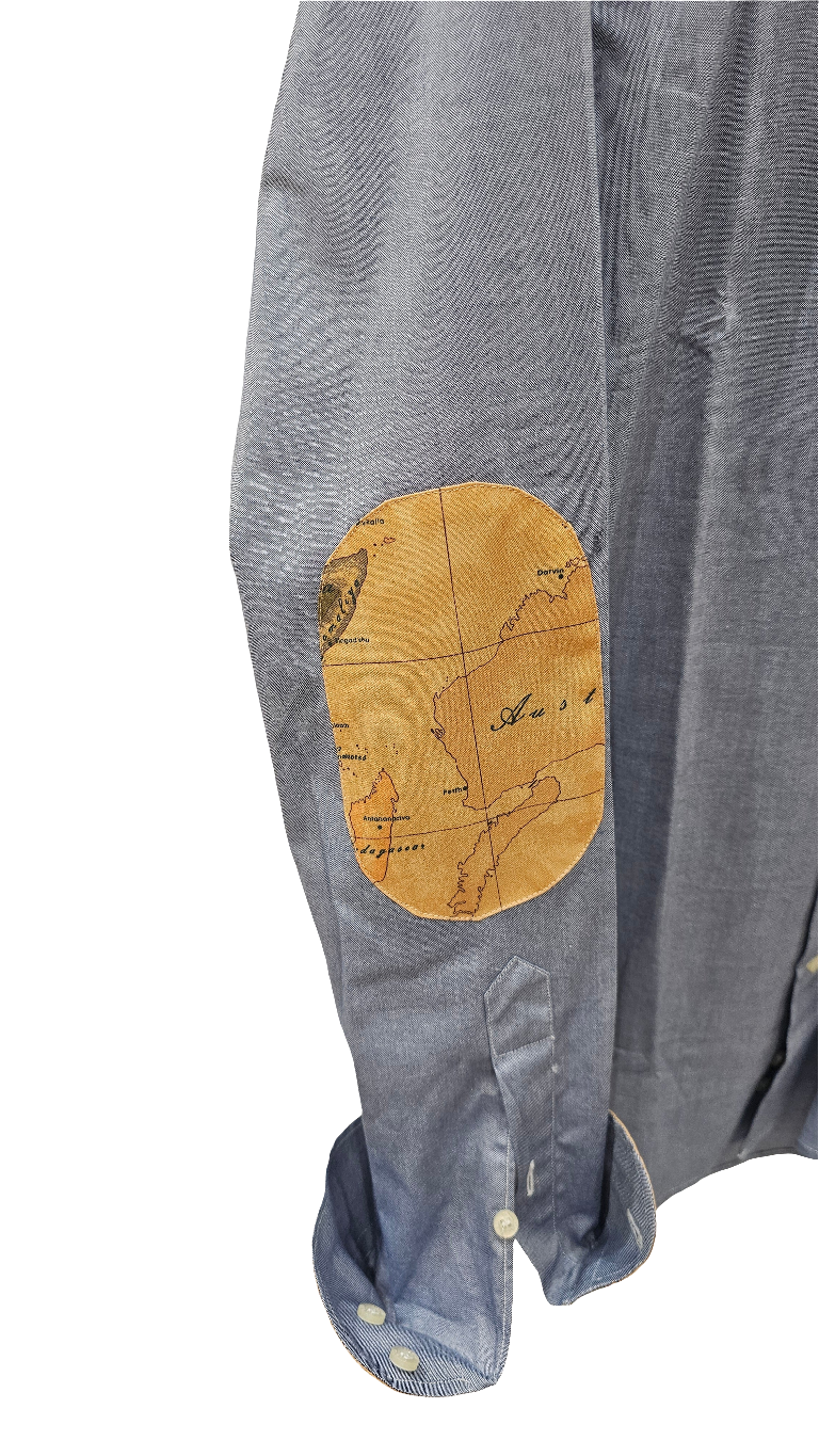 "Elevate il vostro stile con la camicia uomo Alviero Martini. Disponibile in tinta unita o rigata, con inserti polso e collo e una toppa sul gomito in stampa geo, questa camicia è un vero capolavoro di eleganza e stile. Sia che vogliate un look classico o moderno, questa camicia è perfetta per ogni occasione. Indossate il lusso di Alviero Martini 1Classe."