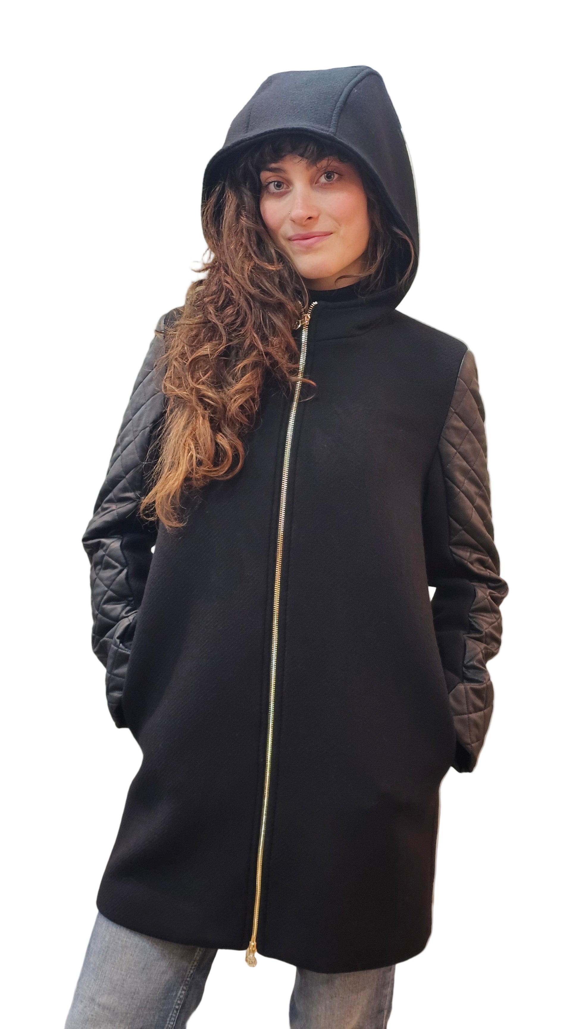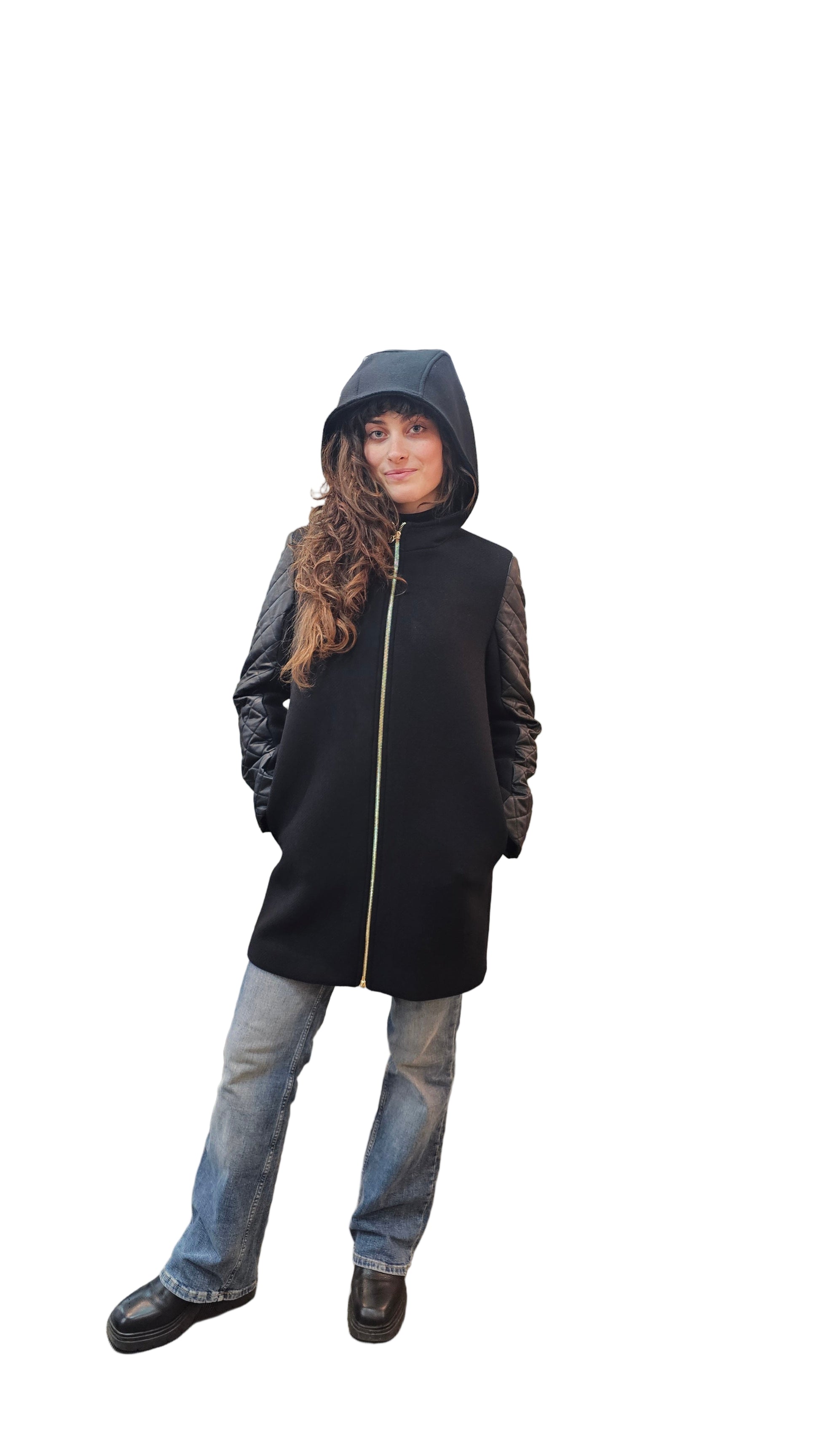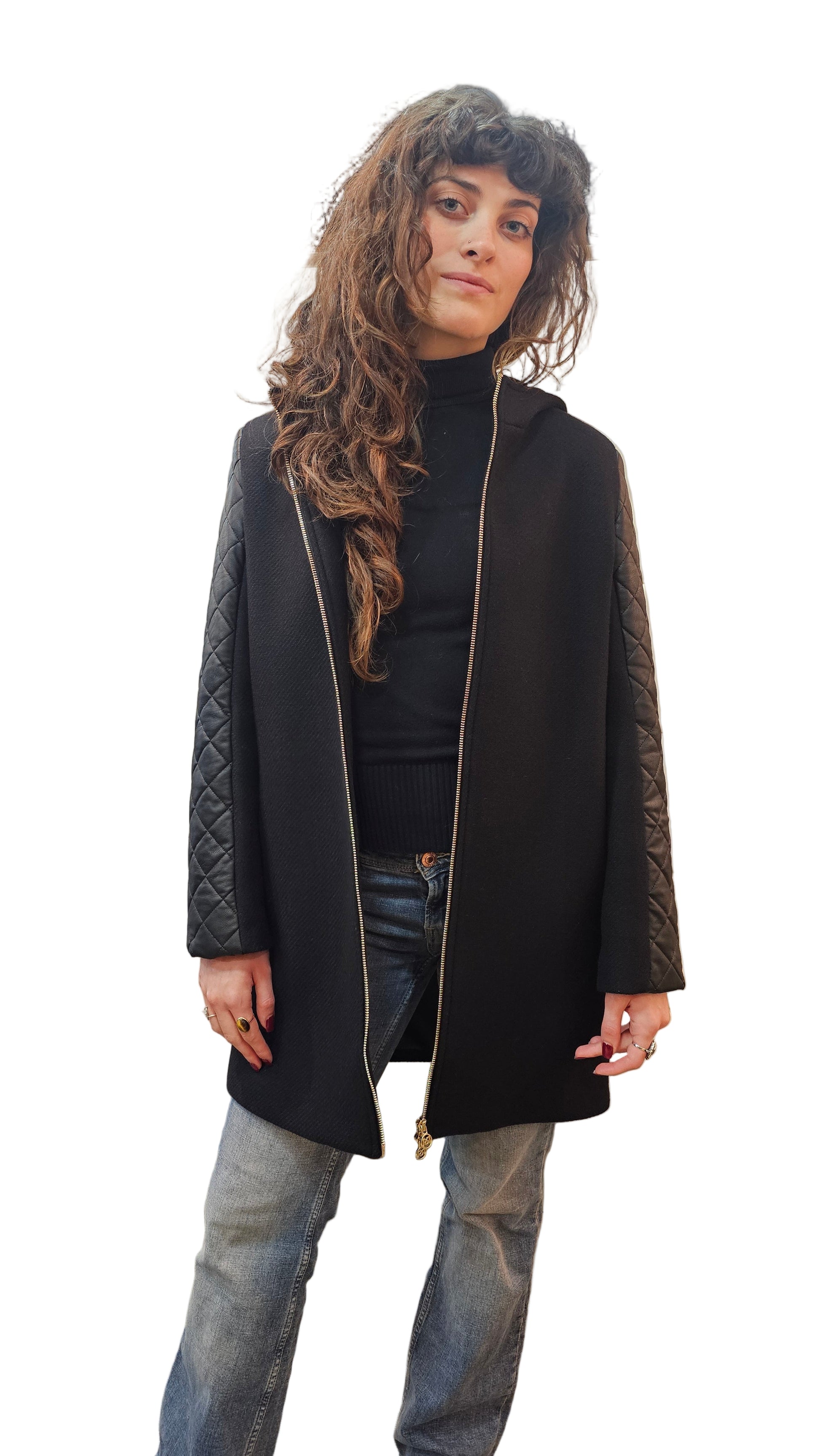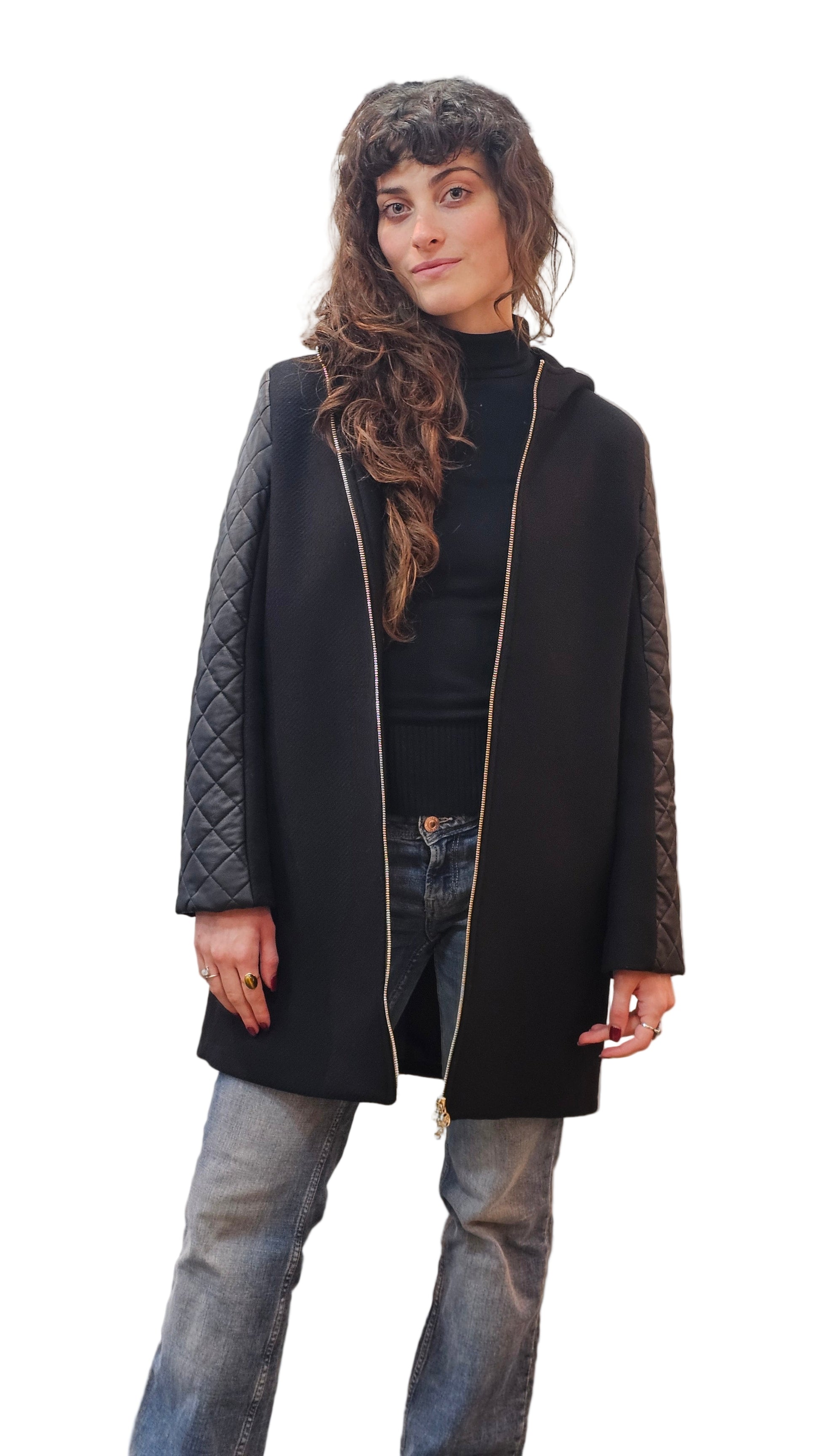 Cappottino nero Rinascimento, elegante e di marca, perfetto per le giornate fredde. Realizzato in tessuto di qualità, il cappotto garantisce un'ottima protezione contro il freddo. Completa il tuo look con un tocco di classe e stile.