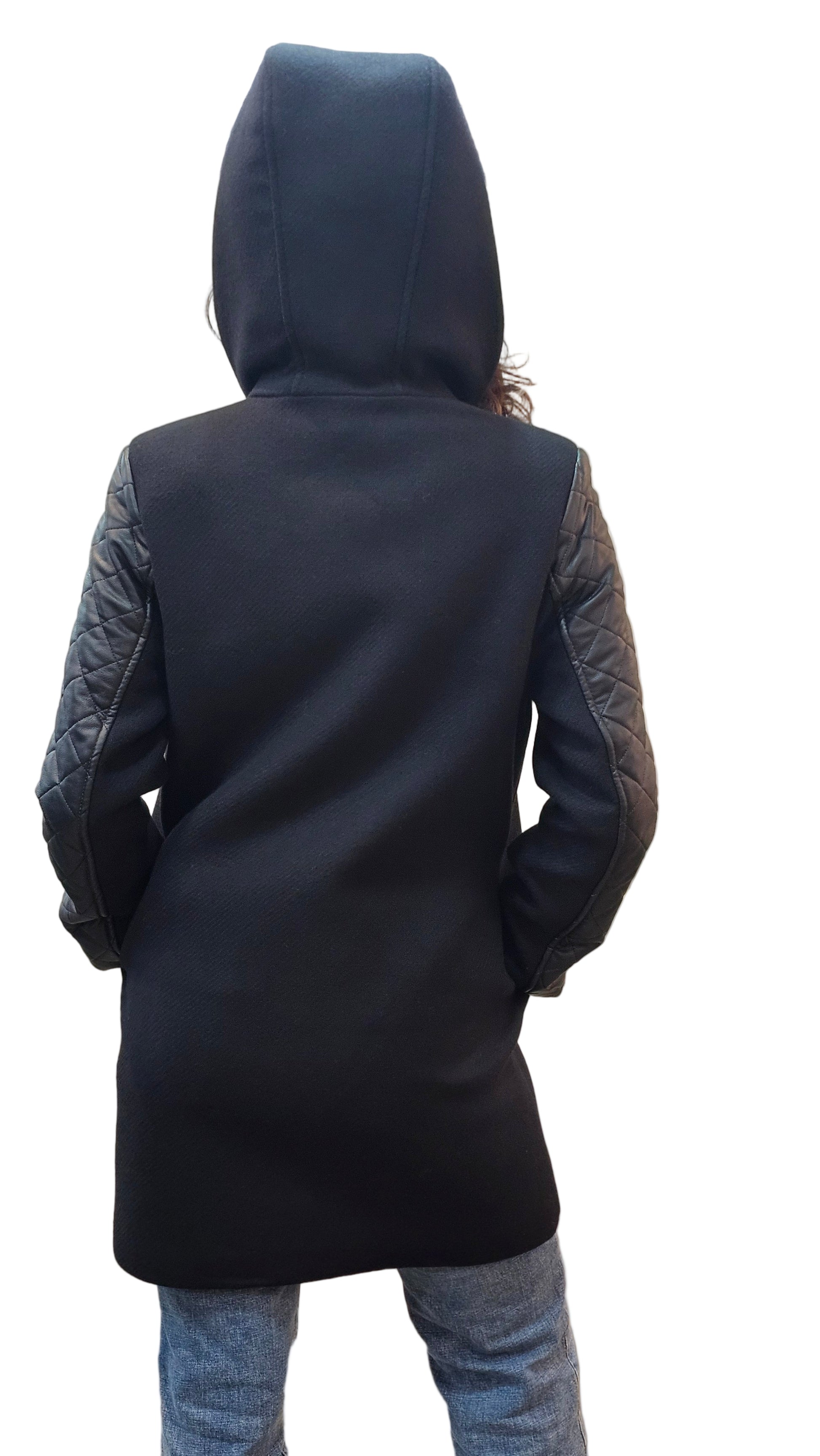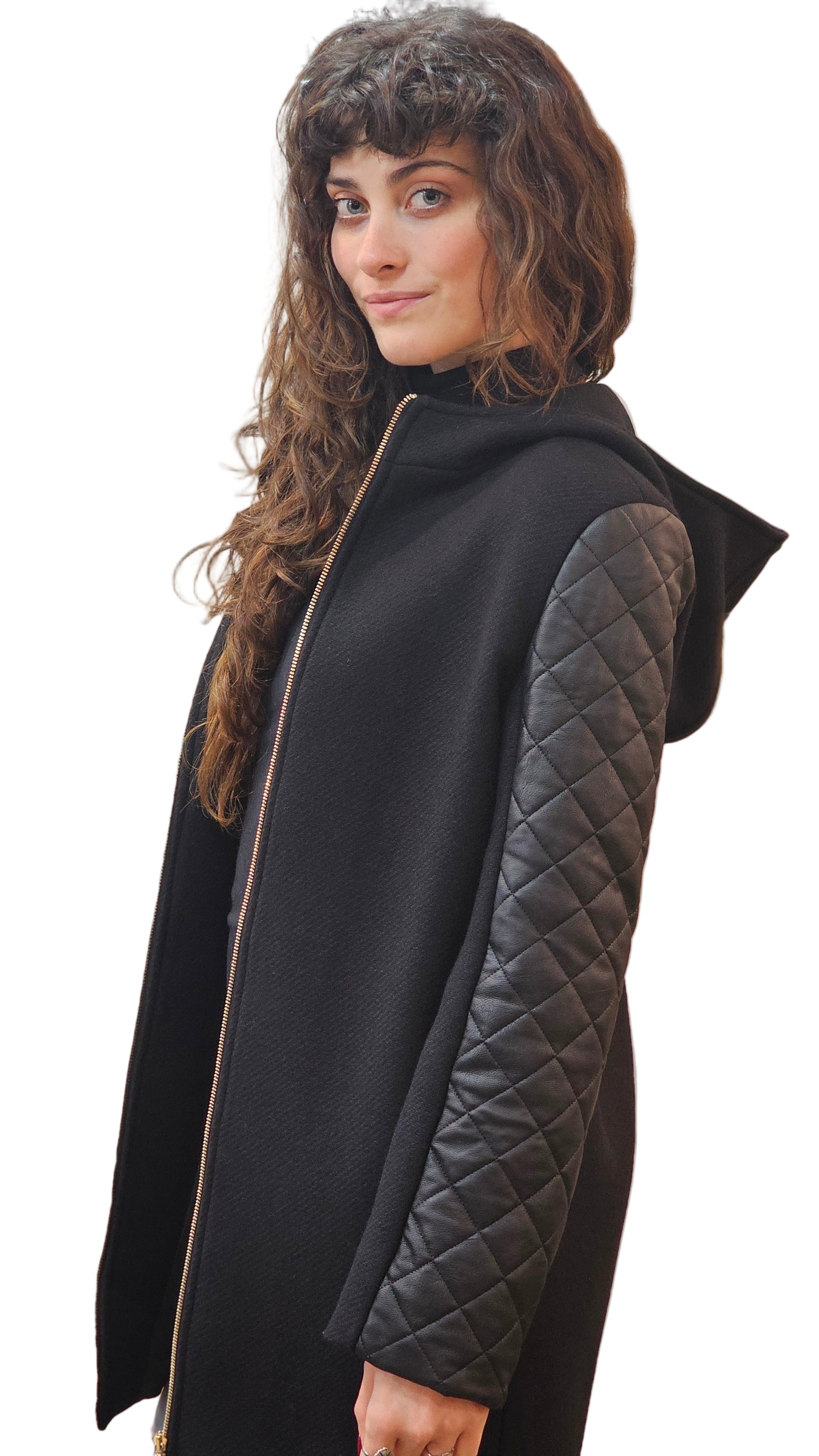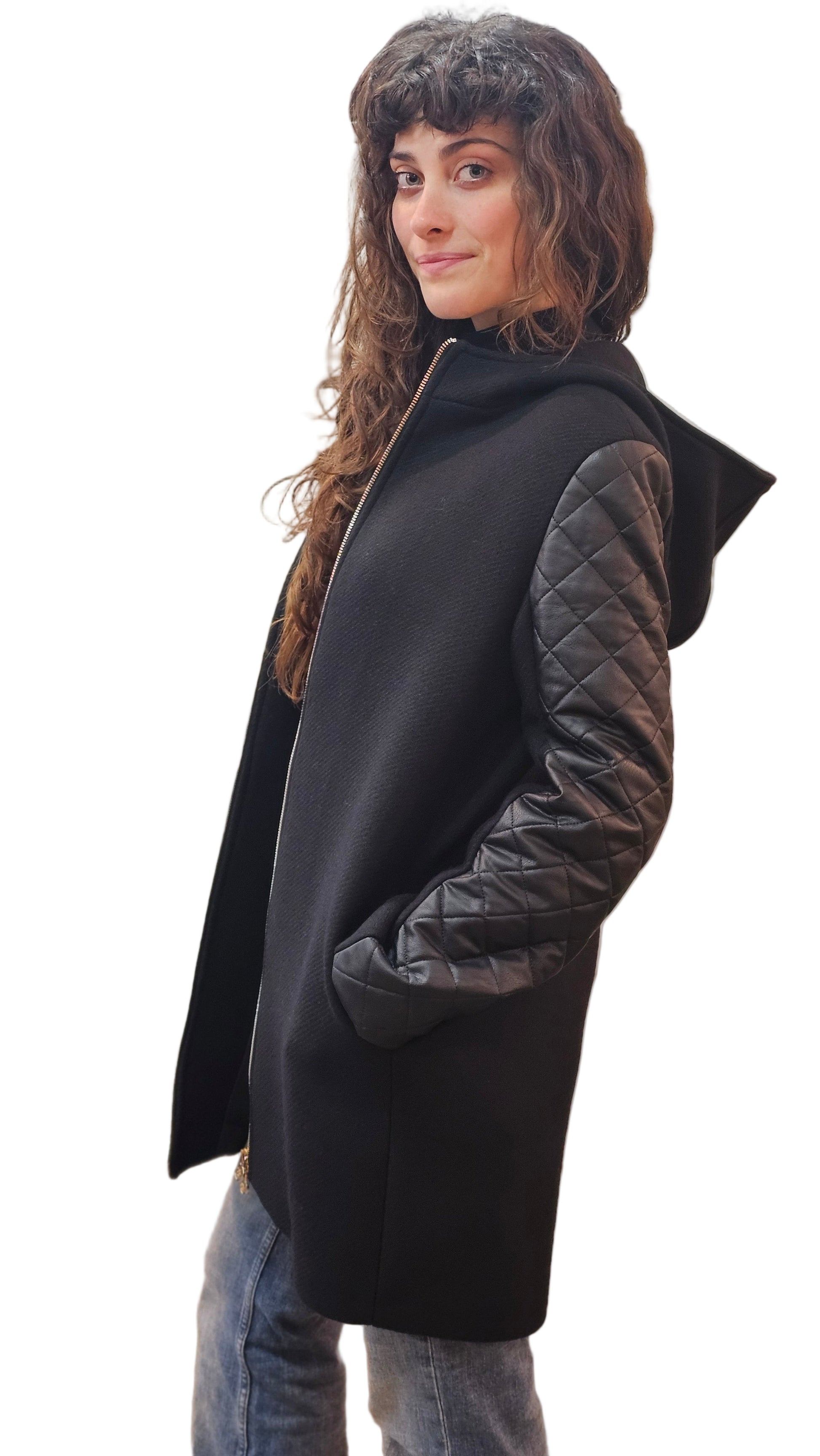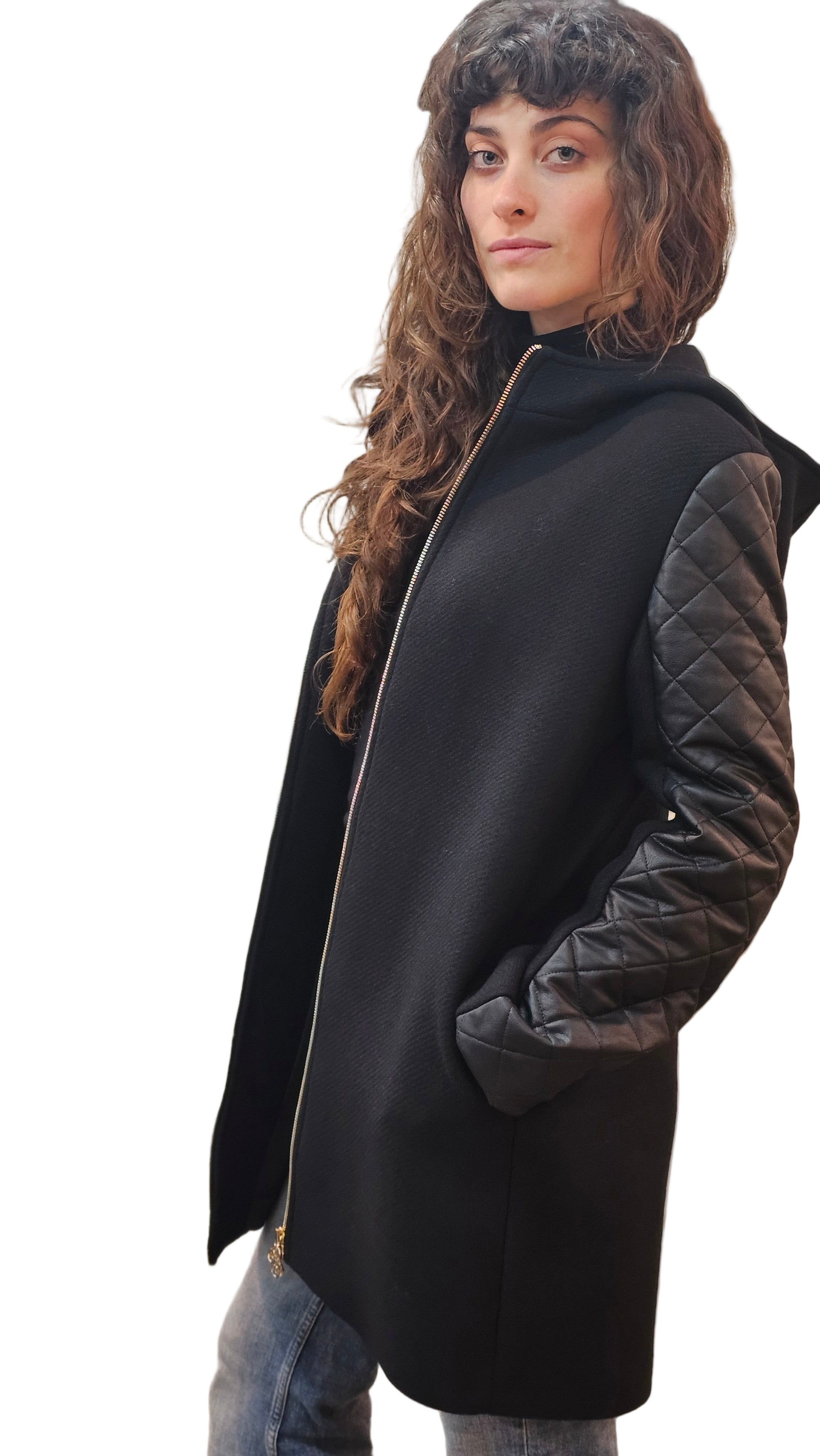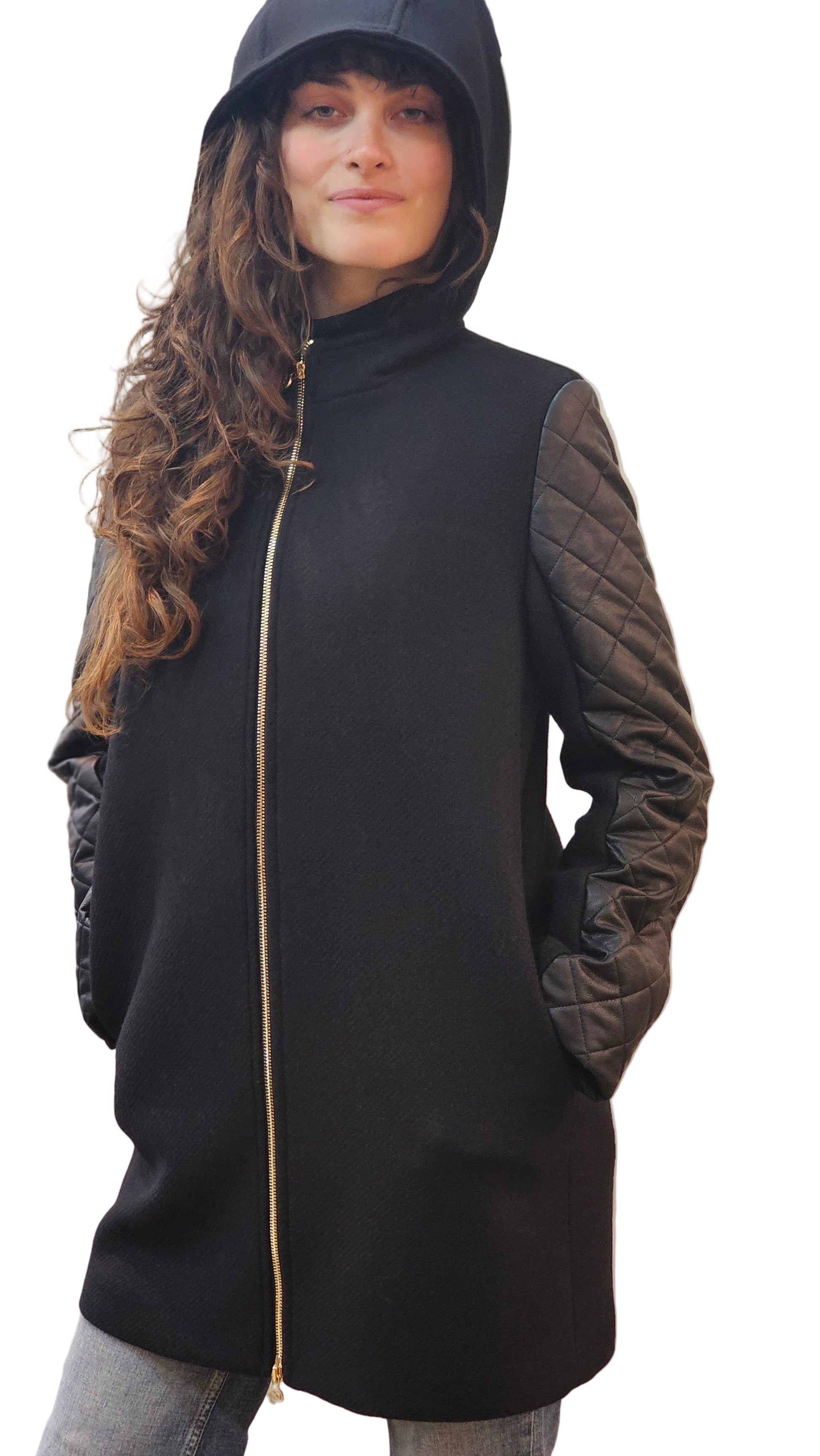 Cappottino nero Rinascimento, elegante e di marca, perfetto per le giornate fredde. Realizzato in tessuto di qualità, il cappotto garantisce un'ottima protezione contro il freddo. Completa il tuo look con un tocco di classe e stile.