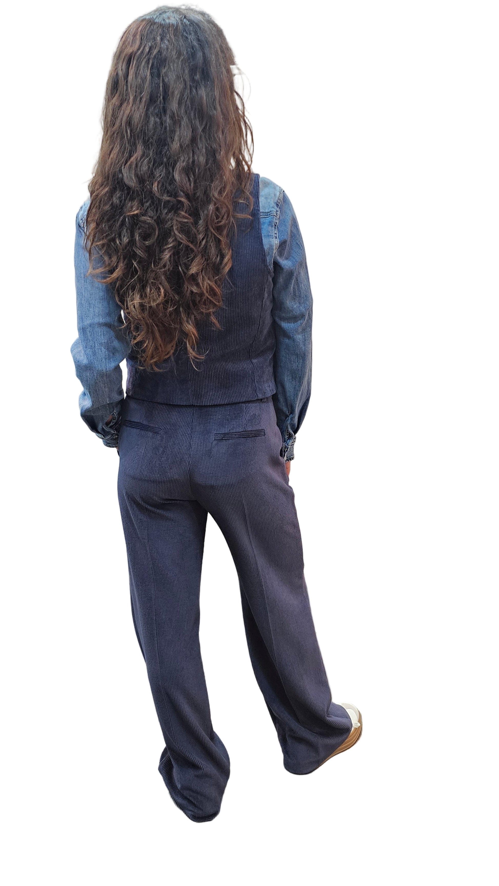 Questo completo è composto da un elegante gilet e un pantalone in velluto a coste. Perfetto per qualsiasi occasione formale, il gilet aggiunge un tocco di classe al look mentre il pantalone in velluto garantisce un comfort superiore. Ideale per esprimere il tuo stile unico e sofisticato.