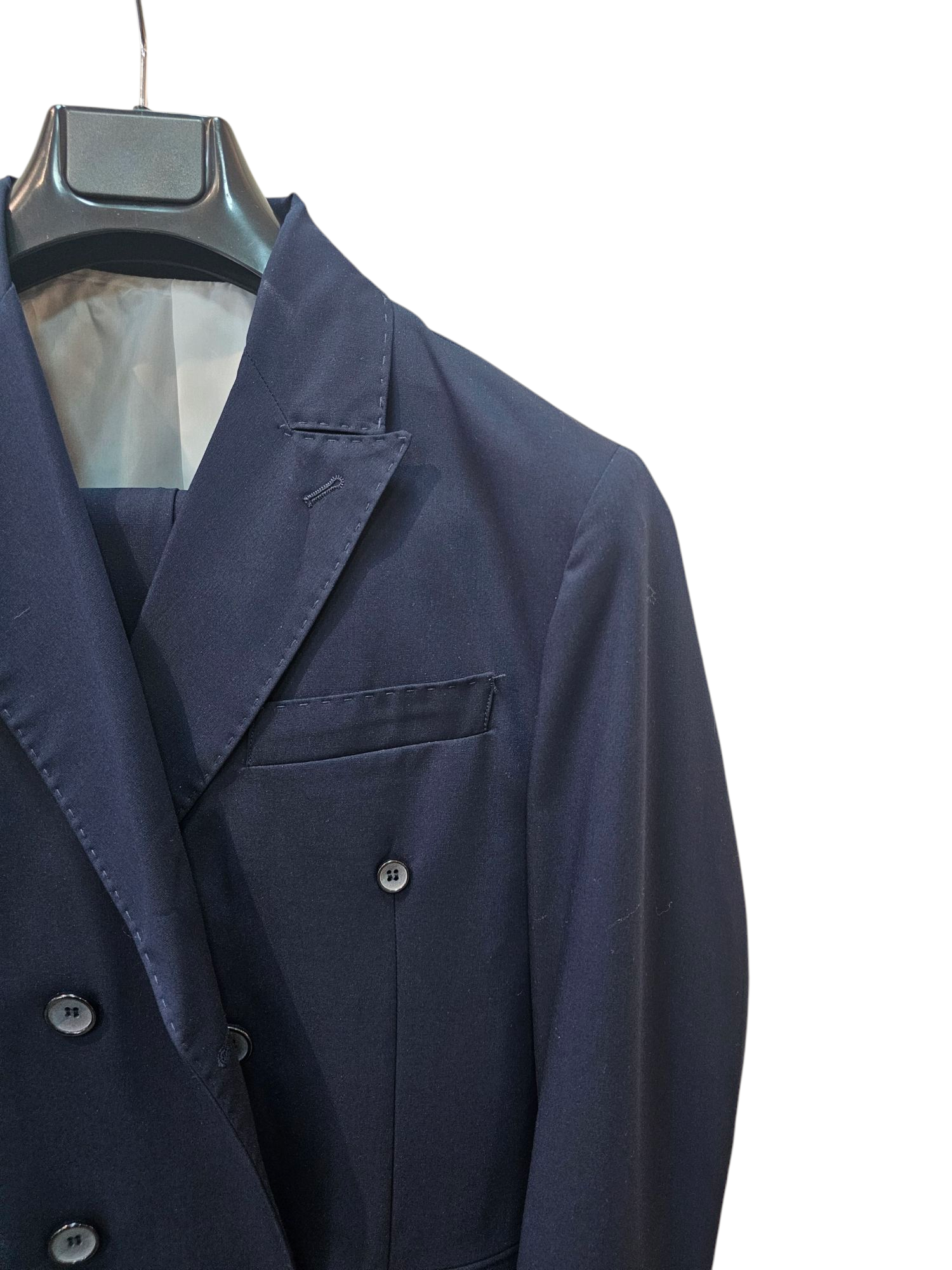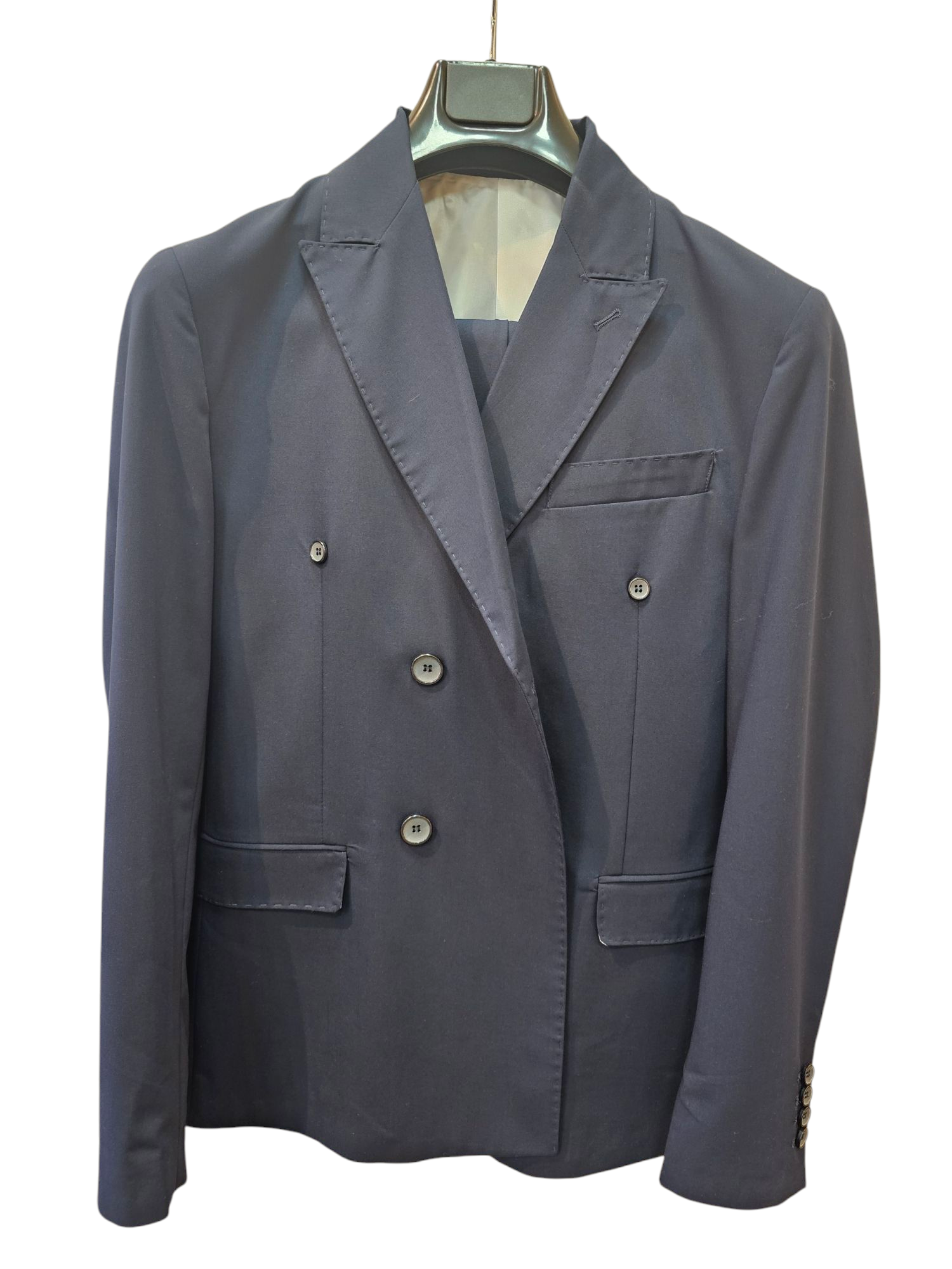 Questo completo uomo è composto da pantalone e giacca, ideale per un look elegante e raffinato. Realizzato con materiali di alta qualità, offre comfort e stile per le occasioni speciali. Perfetto per l'uomo moderno che vuole distinguersi con classe.