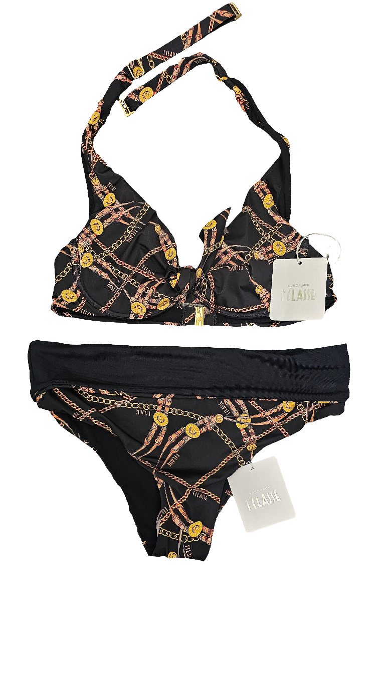 Il nostro costume nero e oro è un must-have per ogni amante della moda. Realizzato con materiali di alta qualità, presenta un design elegante e sofisticato che ti farà risaltare in qualsiasi occasione. Il nero classico si unisce all'oro luccicante per creare un look unico e raffinato. Aggiungi un tocco di lusso al tuo guardaroba con il nostro costume.