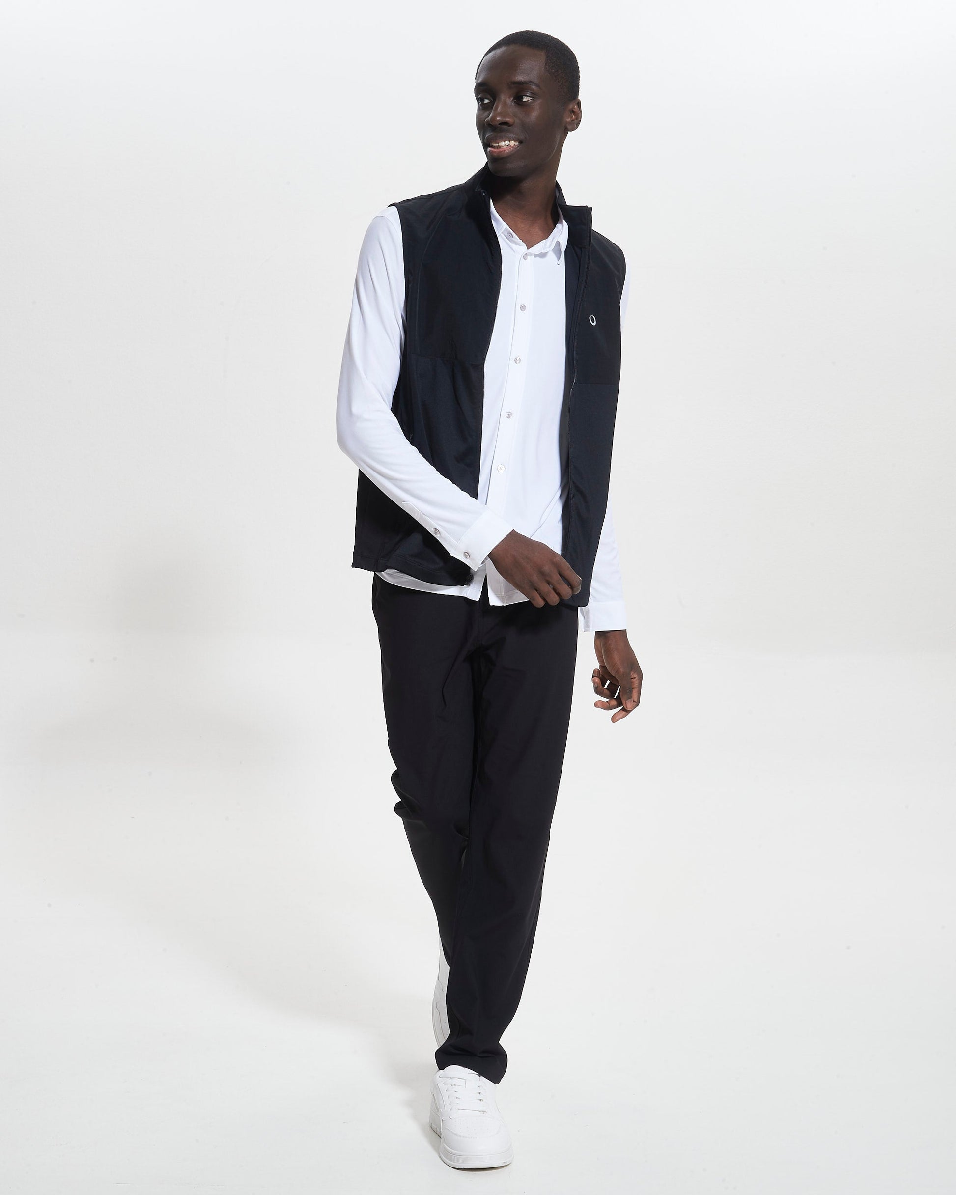 The Evolution Vest features our advanced 88% recycled stretch fabric and a durable woven overlay for enhanced weather resistance. With its moisture-wicking properties and secure-zip hand pockets, this vest is perfect for everyday and every activity.
