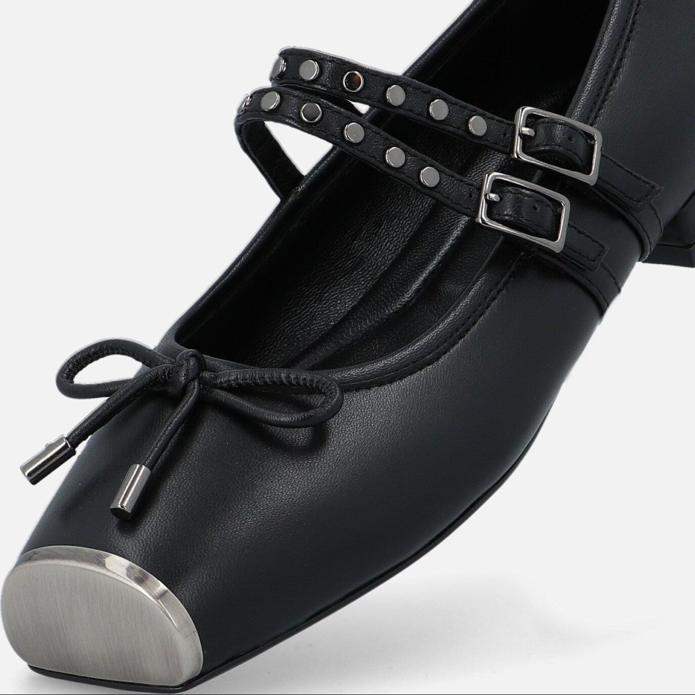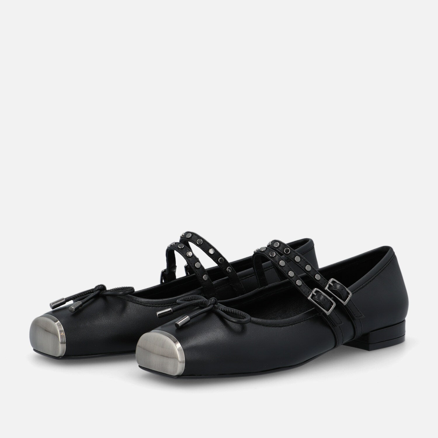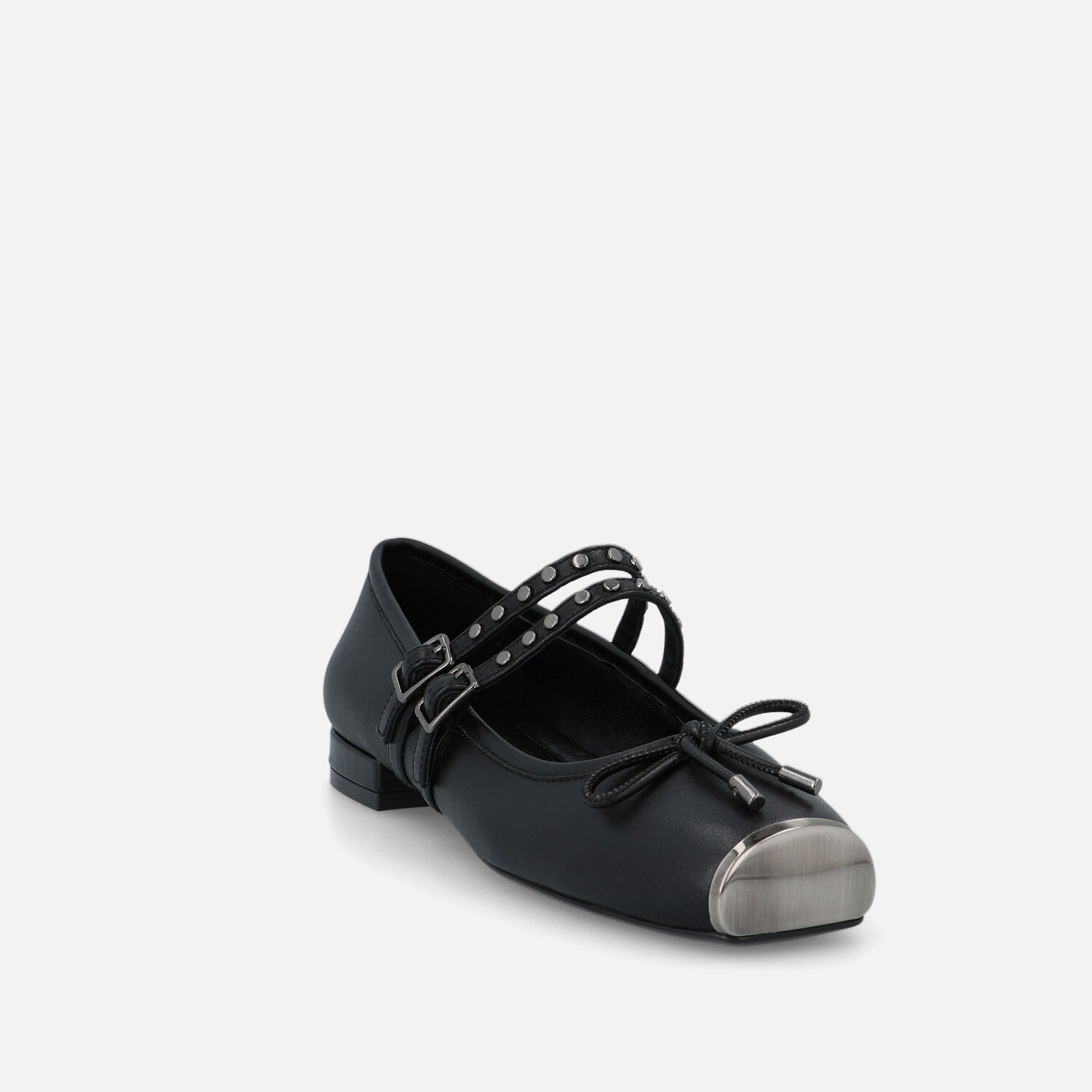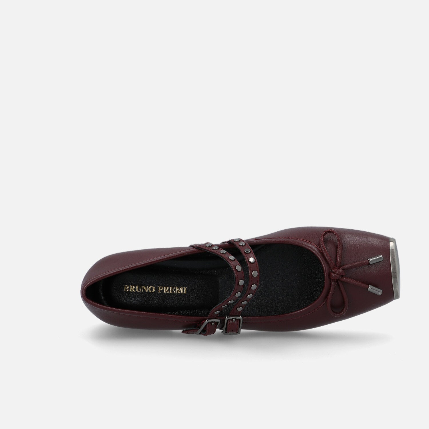 Le Gamine sono le ballerine Bruno Premi. In questa versione la punta squadrata è impreziosita da un puntale metallico silver, che aggiunge un tocco deciso e sofisticato. I due cinturini sottili con fibbie sul collo del piede sono decorati con piccole borchie tonde, richiamando uno stile urban-chic. Completa il design un delicato fiocchetto frontale con terminali metallici in tinta. La suola flat assicura comfort durante tutta la giornata, rendendola la scelta ideale per chi desidera uno stile femminile ma con un’anima grintosa.