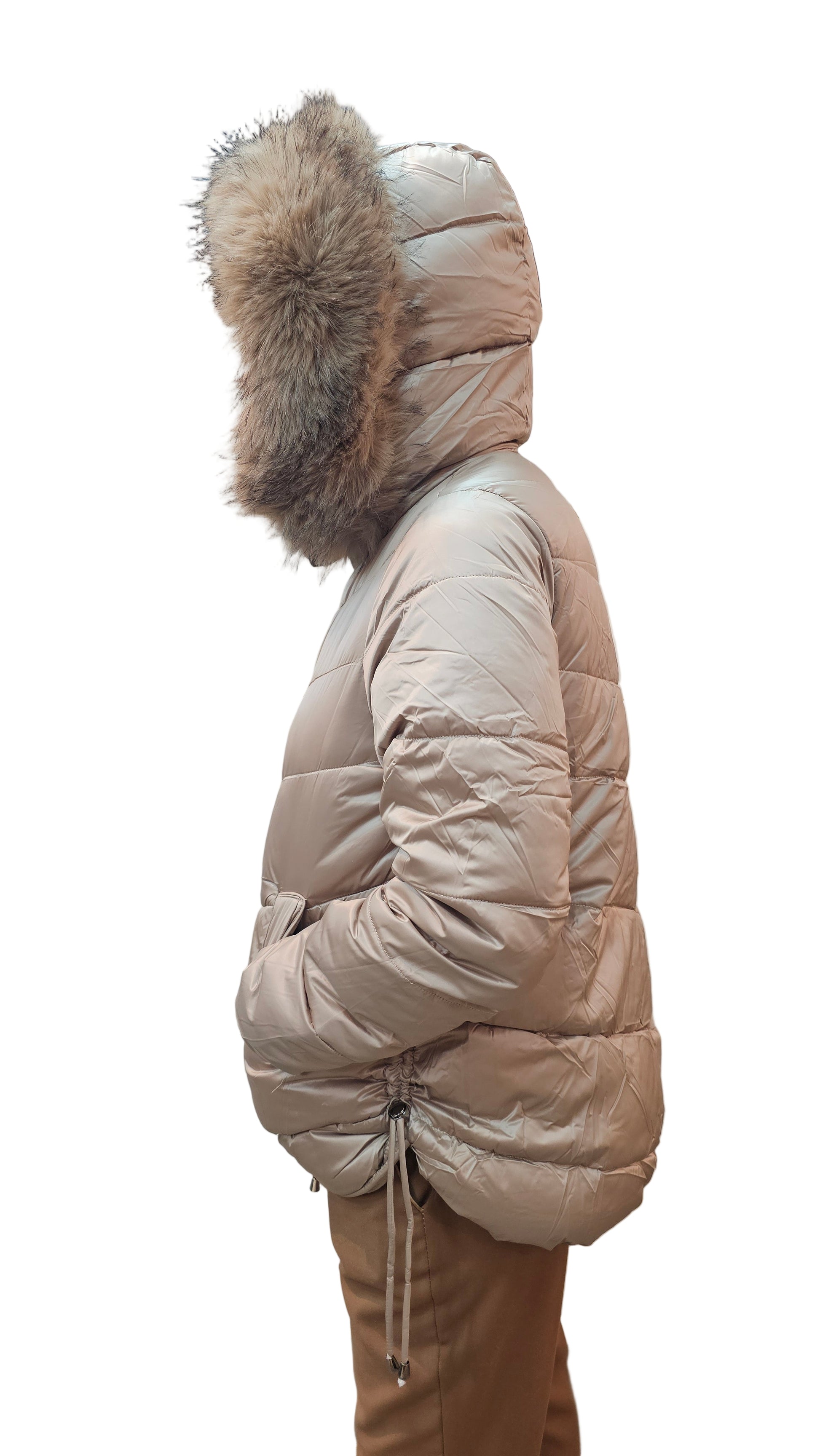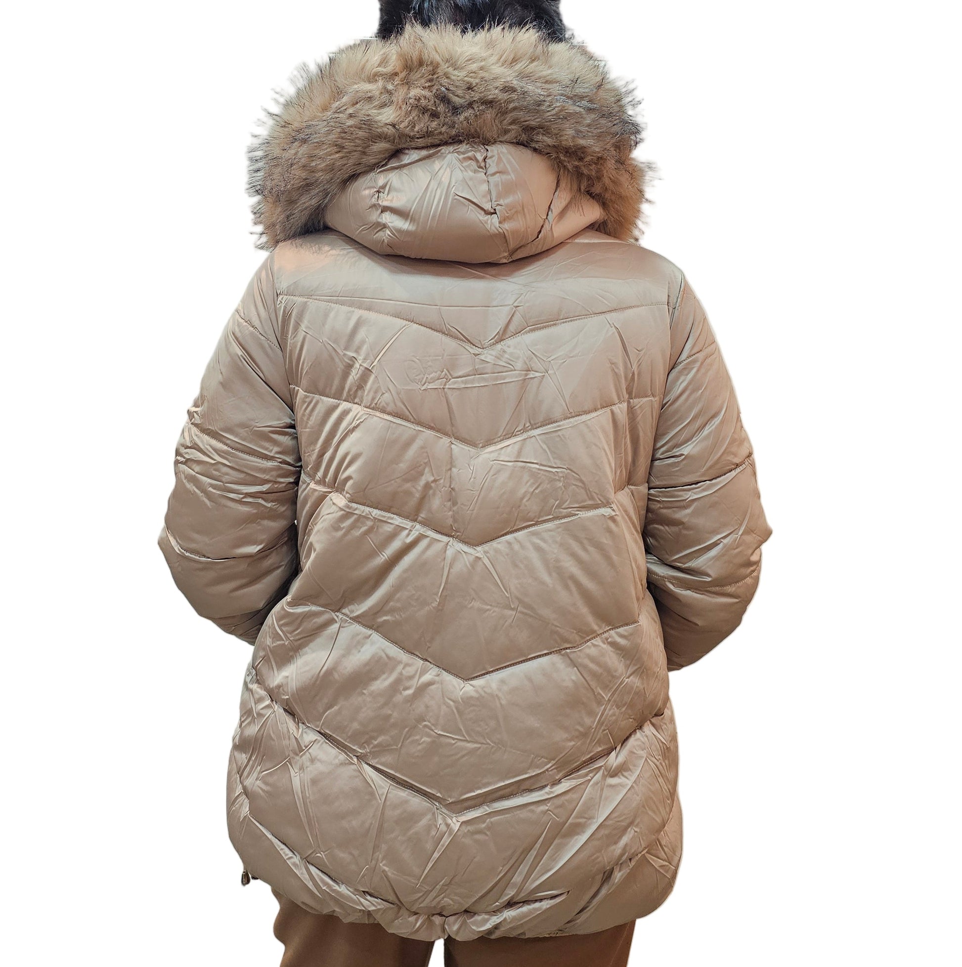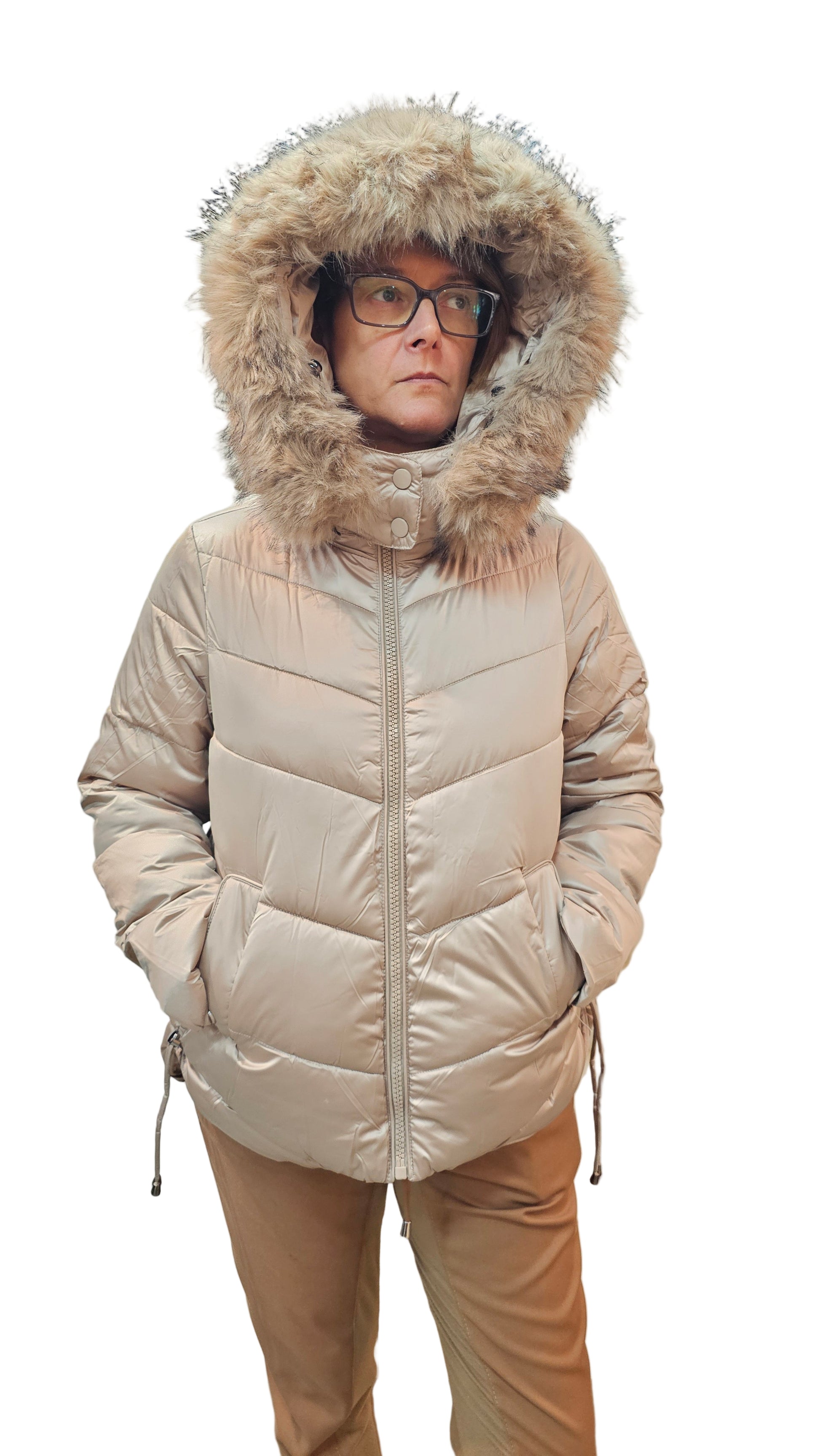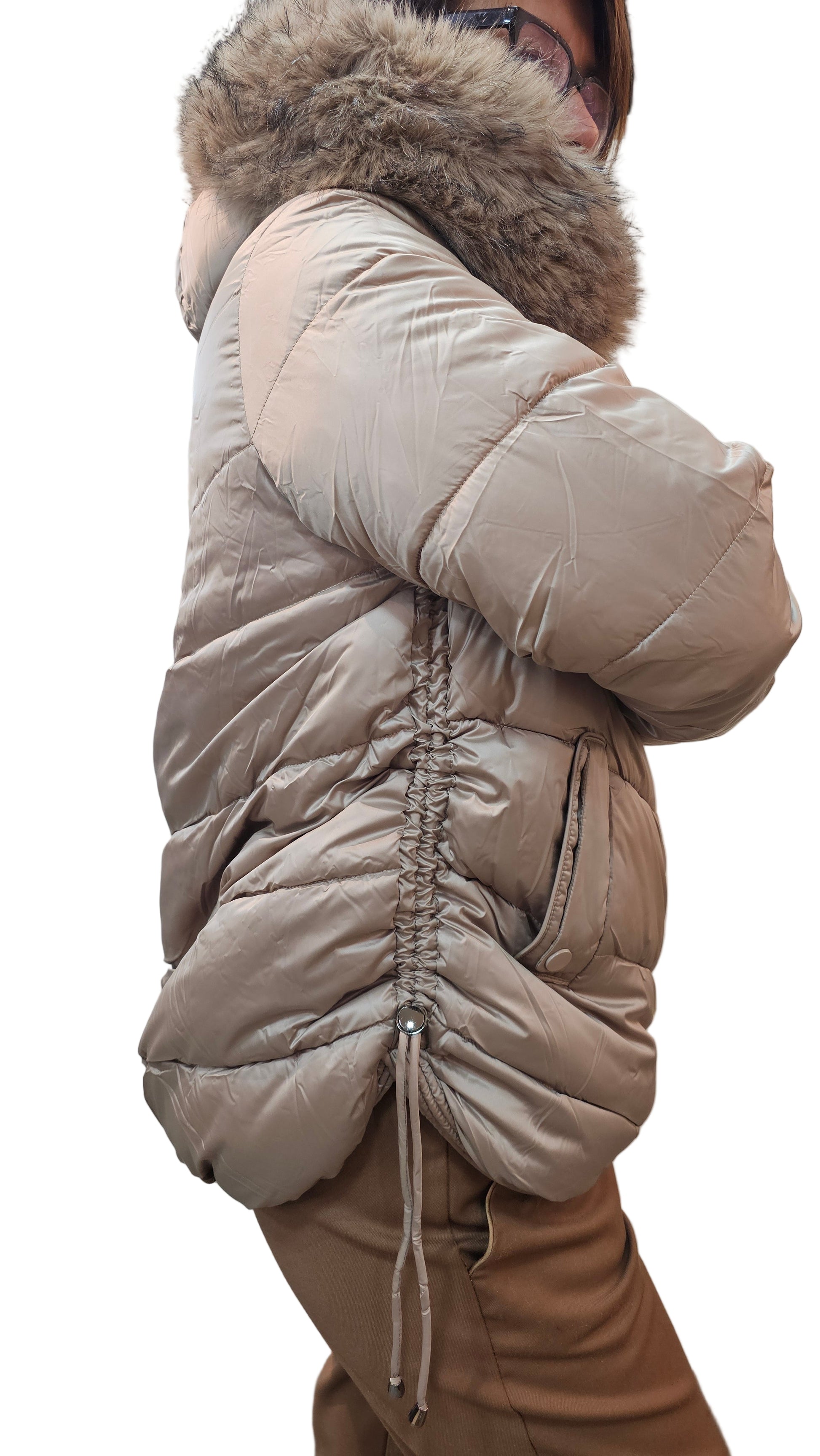 Questo giacca piumino è progettato con un cappuccio con pelo, che offre una maggiore protezione dal freddo. Il piumino rende la giacca leggera e calda, ideale per le temperature più basse. Aggiungi stile e calore al tuo guardaroba con questa giacca piumino versatile.