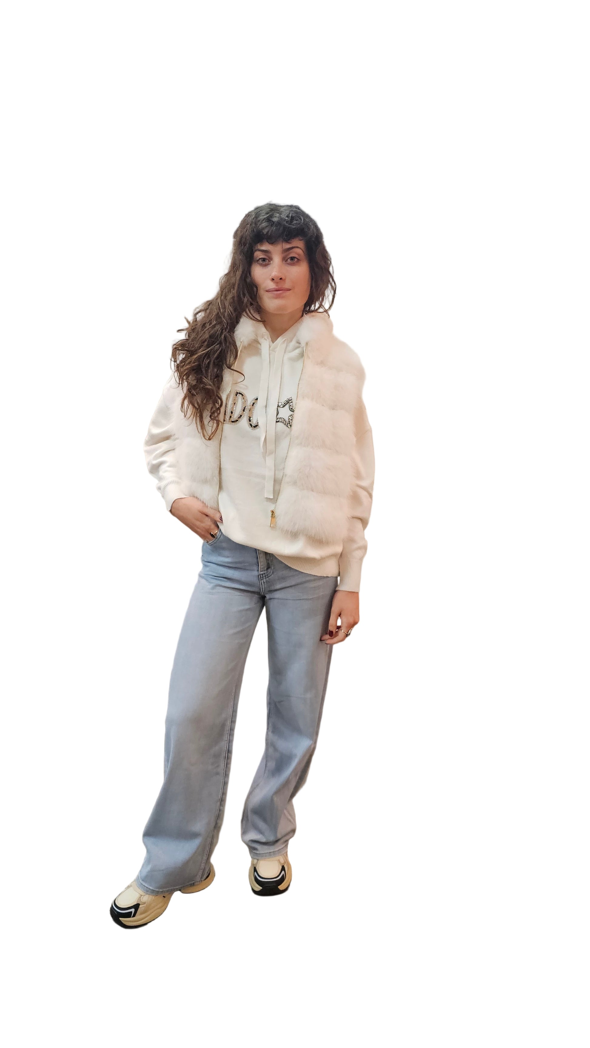 Il Gilet ecopelliccia aggiunge stile ed eleganza al tuo outfit mentre ti tiene caldo e confortevole. Realizzato con materiali di alta qualità, questo gilet offre un'alternativa sostenibile alla pelliccia convenzionale. Aggiungi un tocco di lusso alla tua collezione con il Gilet ecopelliccia.