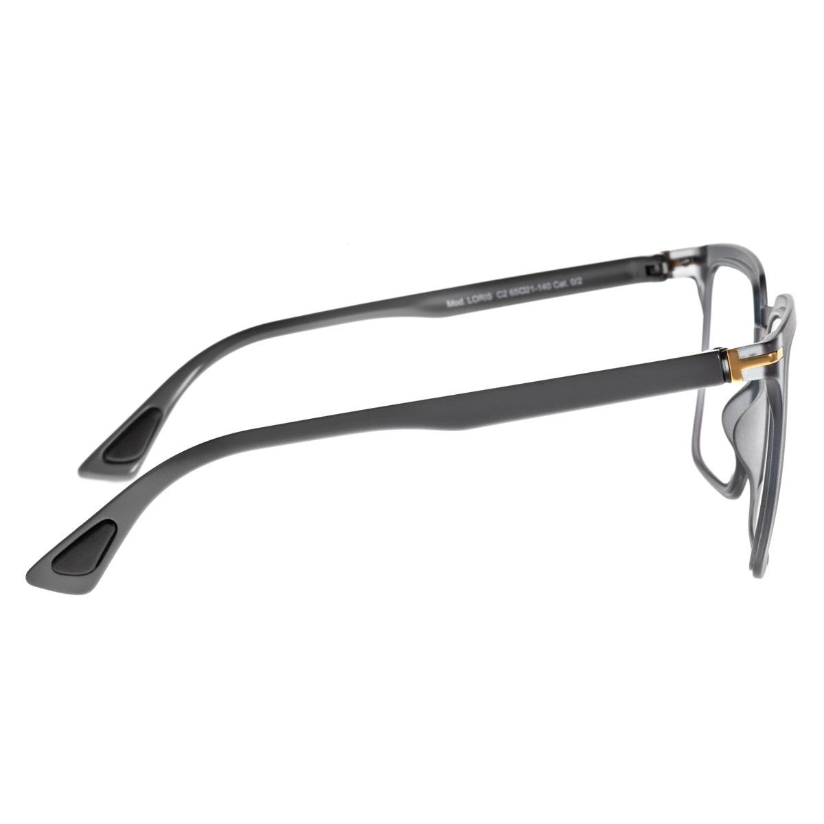 La montatura si distingue per linee pulite ed equilibrate, pensate per valorizzare il viso con discrezione ed eleganza. Le lenti grigie fotocromatiche si adattano alle diverse condizioni di luce, garantendo protezione visiva e comfort costante durante tutta la giornata.