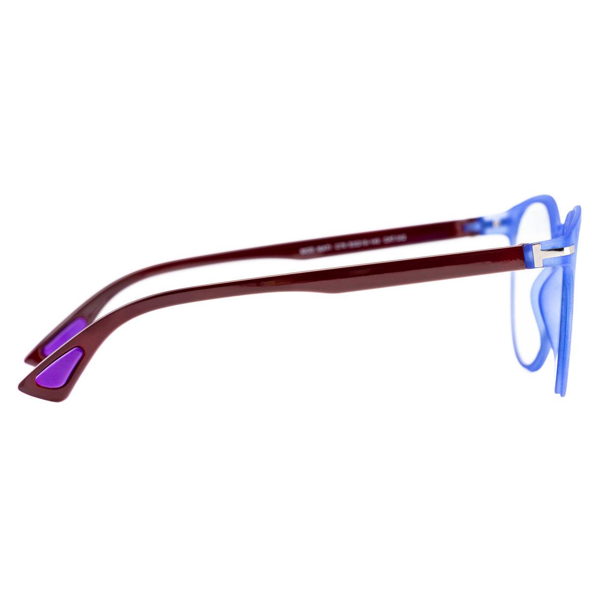 Il frontale viola soft touch crystal si abbina alle aste rosso vinaccia con dettagli viola, creando un mix armonico e originale di tonalità. Le lenti blu fotocromatiche si adattano alla luce, garantendo protezione e comfort visivo in ogni condizione.