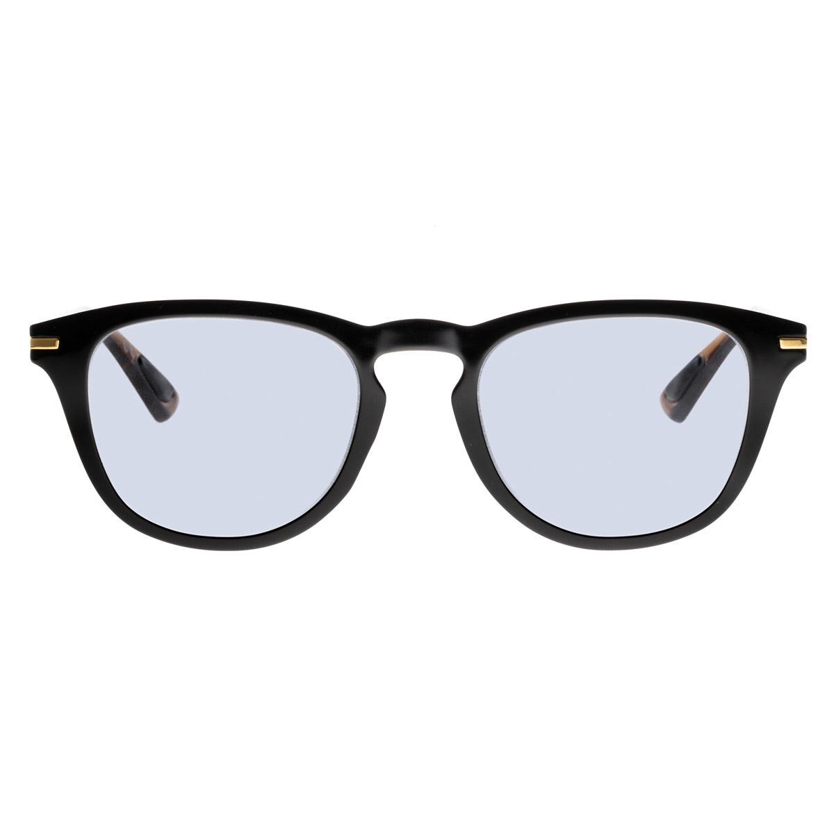 Il frontale nero è abbinato a aste marroni lucide crystal impreziosite dal Tlogo oro, mentre le lenti grigie fotocromatiche si adattano alla luce, garantendo protezione e comfort visivo in ogni momento.