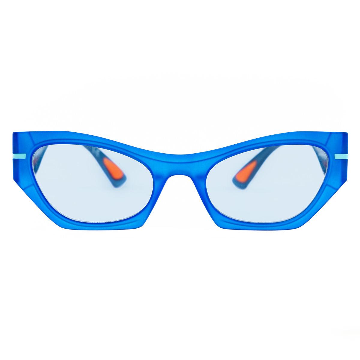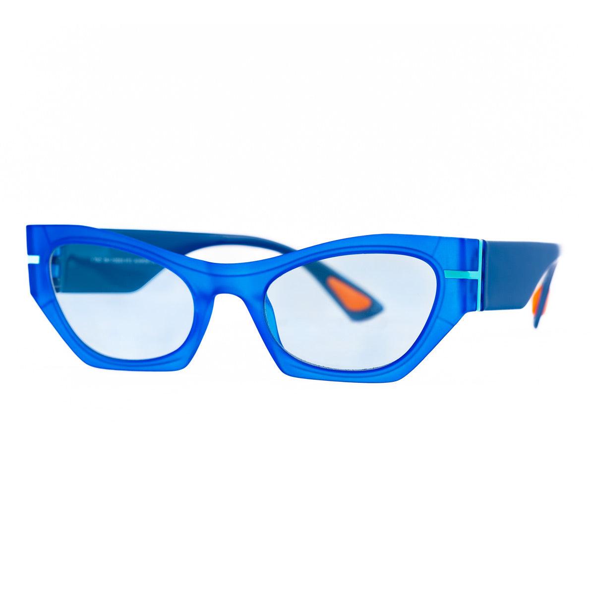 Il frontale blu soft touch crystal e le aste blu lucide creano un look sofisticato e vibrante. I dettagli azzurri, come il Tlogo e i terminali, aggiungono un tocco fresco e contemporaneo. Le lenti grigie fotocromatiche si adattano alla luce, garantendo visione ottimale e protezione.