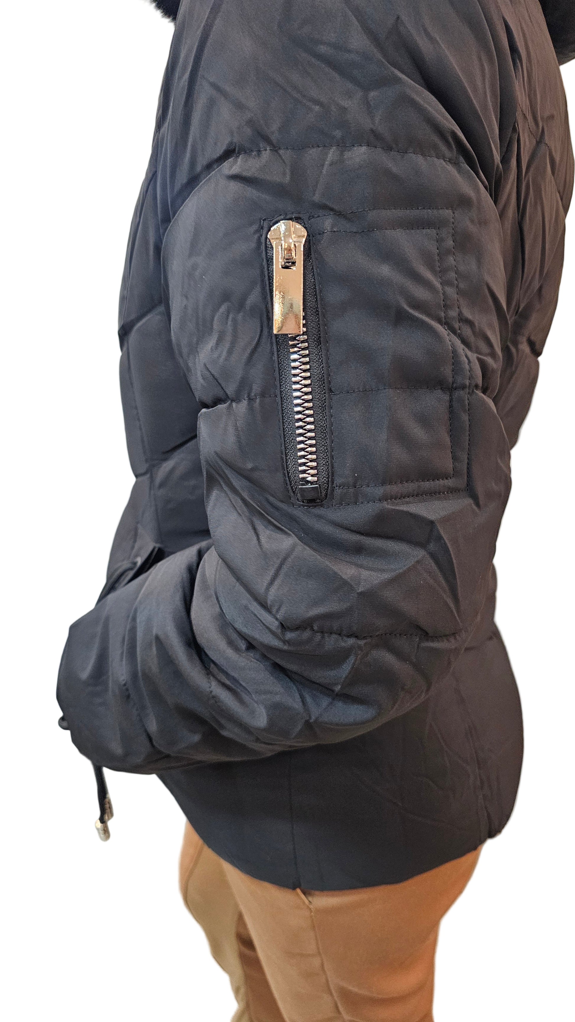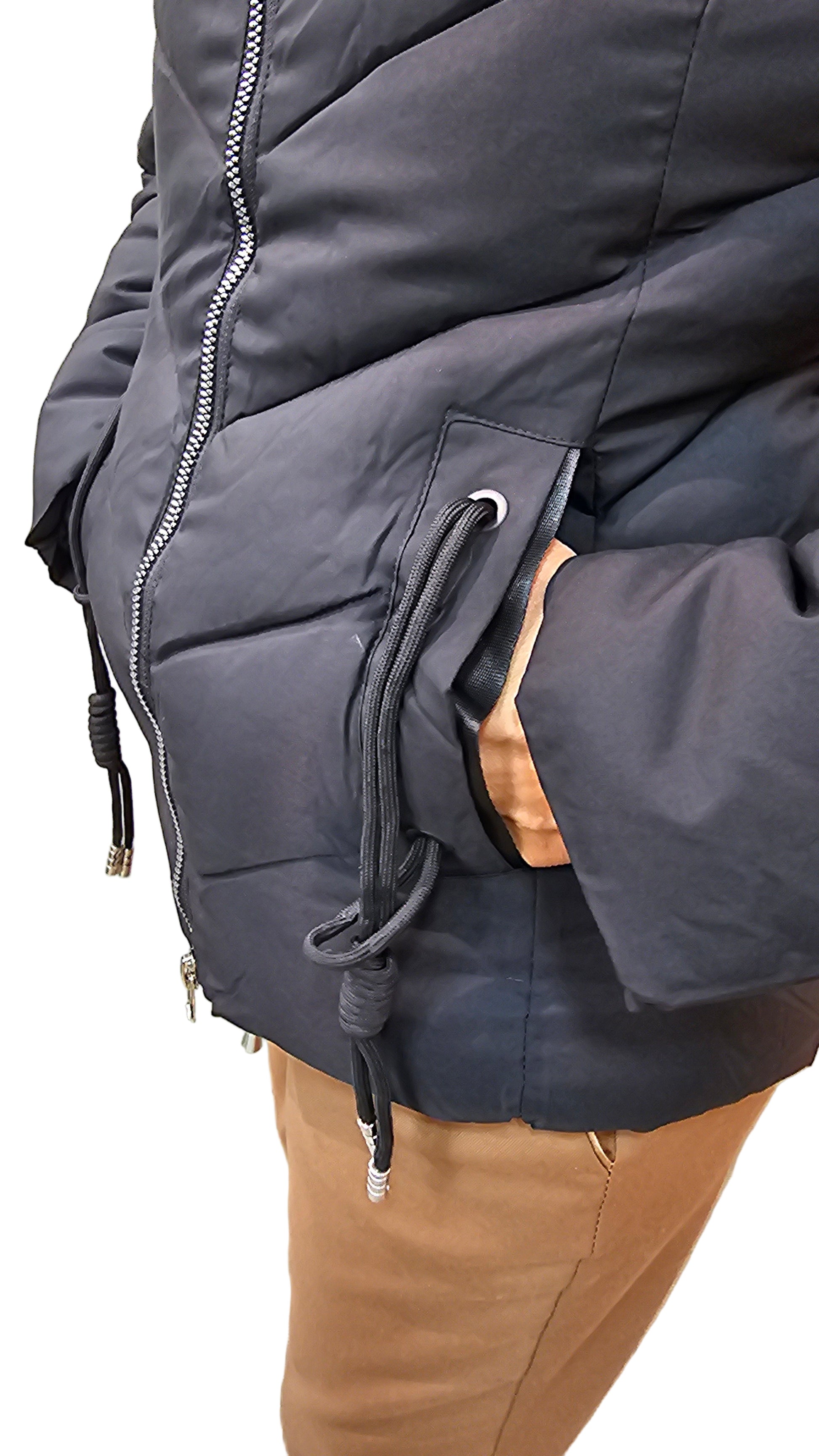 Il Piumino Danger è realizzato con una comoda zip e un cappuccio, per una vestibilità perfetta e protezione da freddo e vento. La pelliccia sintetica sul cappuccio aggiunge un tocco di eleganza e calore, rendendo questo piumino un must-have per l'inverno