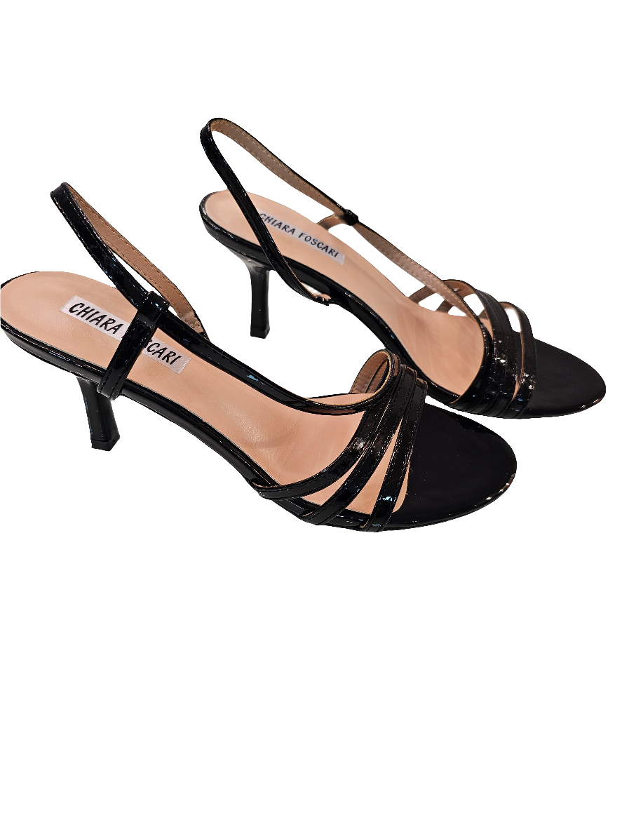 Il sandalo vernice nero è dotato di un tacco di 5 cm e un laccio laterale sul dorso per una calzata confortevole e sicura. La vernice nera fornisce uno stile elegante e versatile per ogni occasione. Aggiunta perfetta al tuo guardaroba per un look chic e alla moda.
