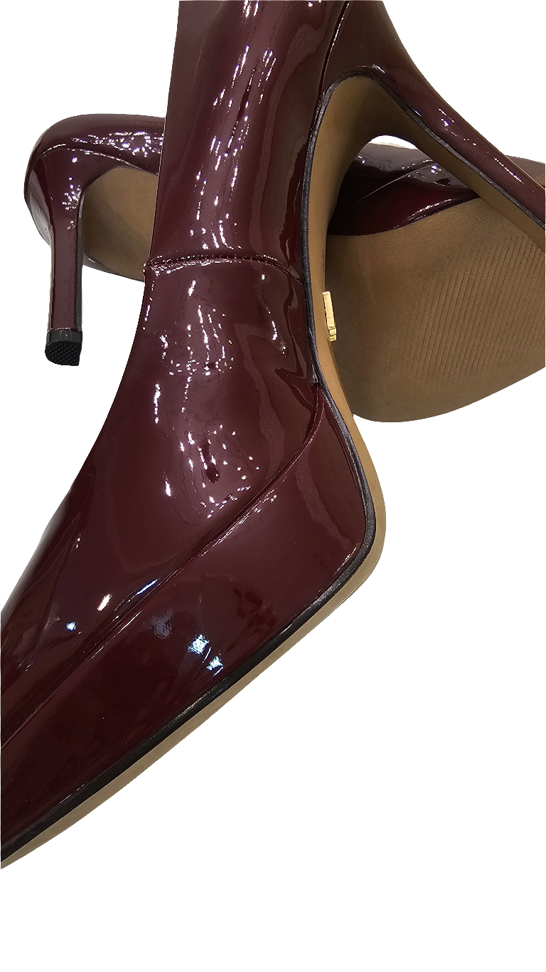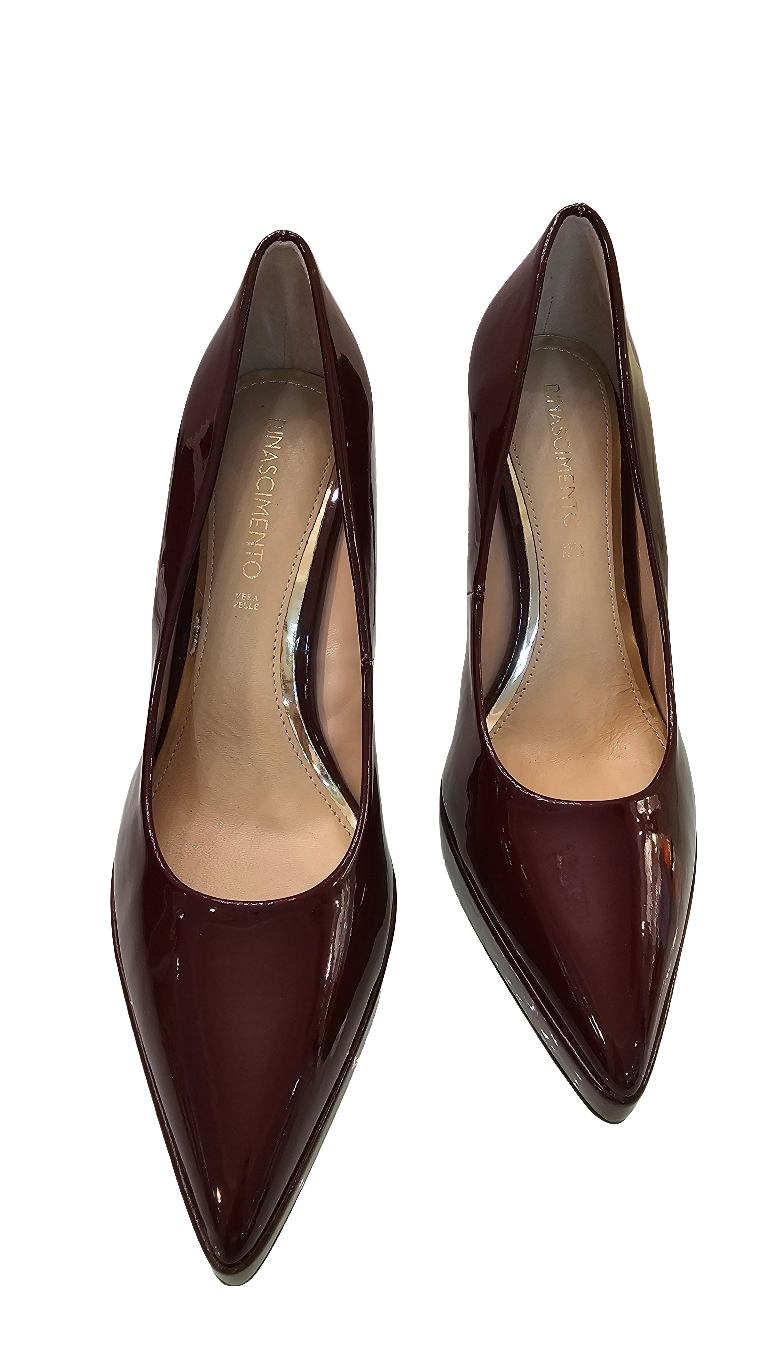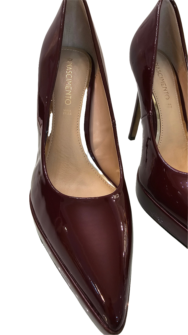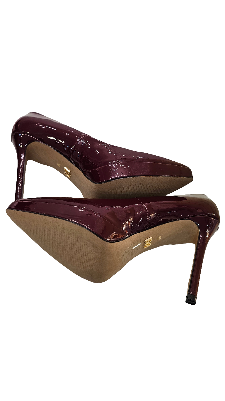 "Eleganza ed esclusività si fondono con questi décolleté in vernice bordeaux, dotati di un raffinato plateau. Saranno la scelta perfetta per completare un look sofisticato e femminile, regalando un tocco di classe e glamour ad ogni passo."