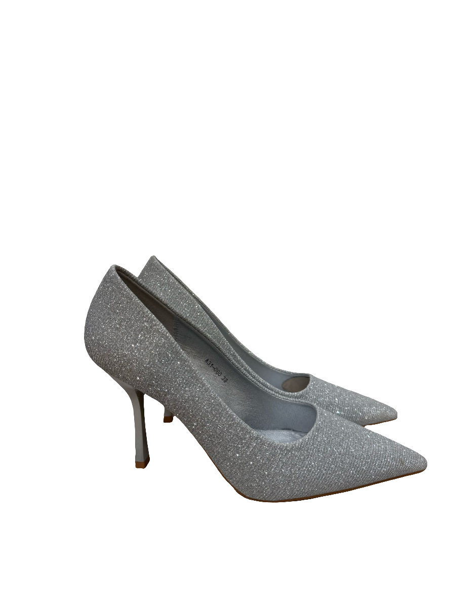 Queste décolleté brillantini color argento con tacco clessidra sono eleganti e versatili. Ideali per ogni occasione, completano il tuo look con un tocco di luccichio. Il tacco a forma di clessidra offre comfort e stabilità, mentre i brillantini aggiungono un'eleganza scintillante. Perfette per essere sempre al top.