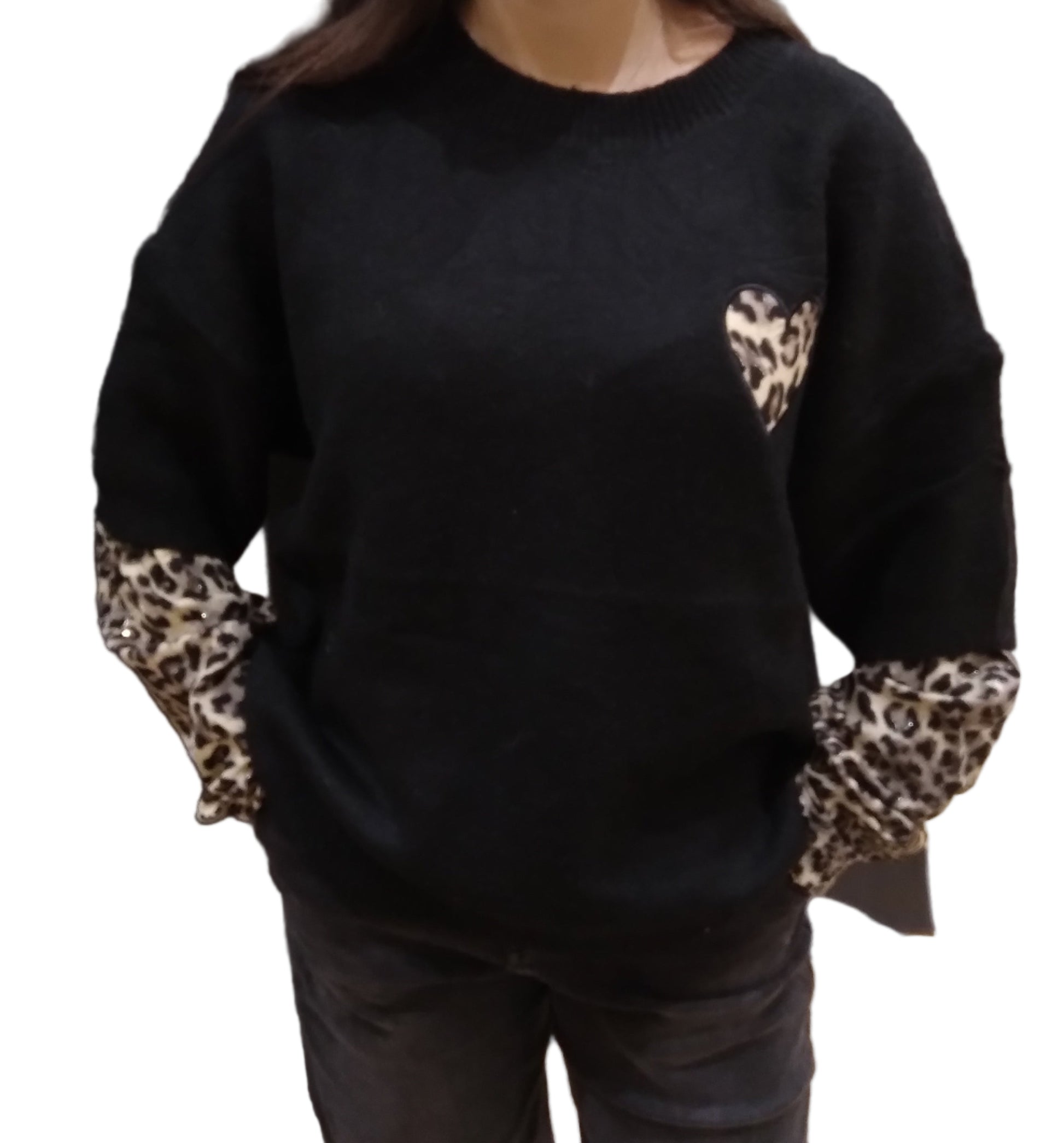 Il maglione con manica corta è perfetto per aggiungere un tocco di eleganza al tuo look quotidiano. La manica leopardata dona un tocco di originalità al classico maglione, rendendolo un capo unico e versatile. Grazie alla sua qualità e design, potrai indossarlo in diverse occasioni senza rinunciare allo stile.