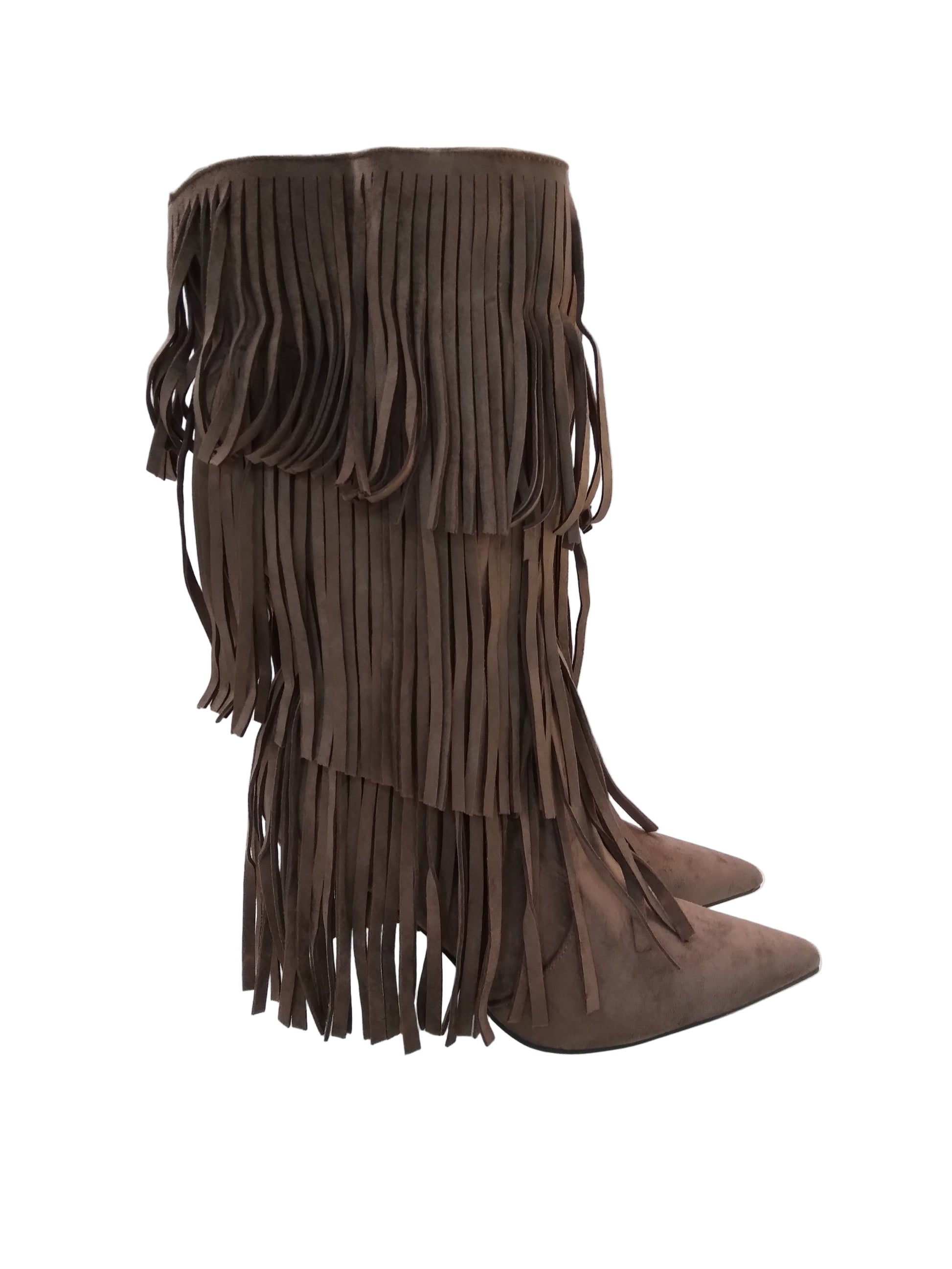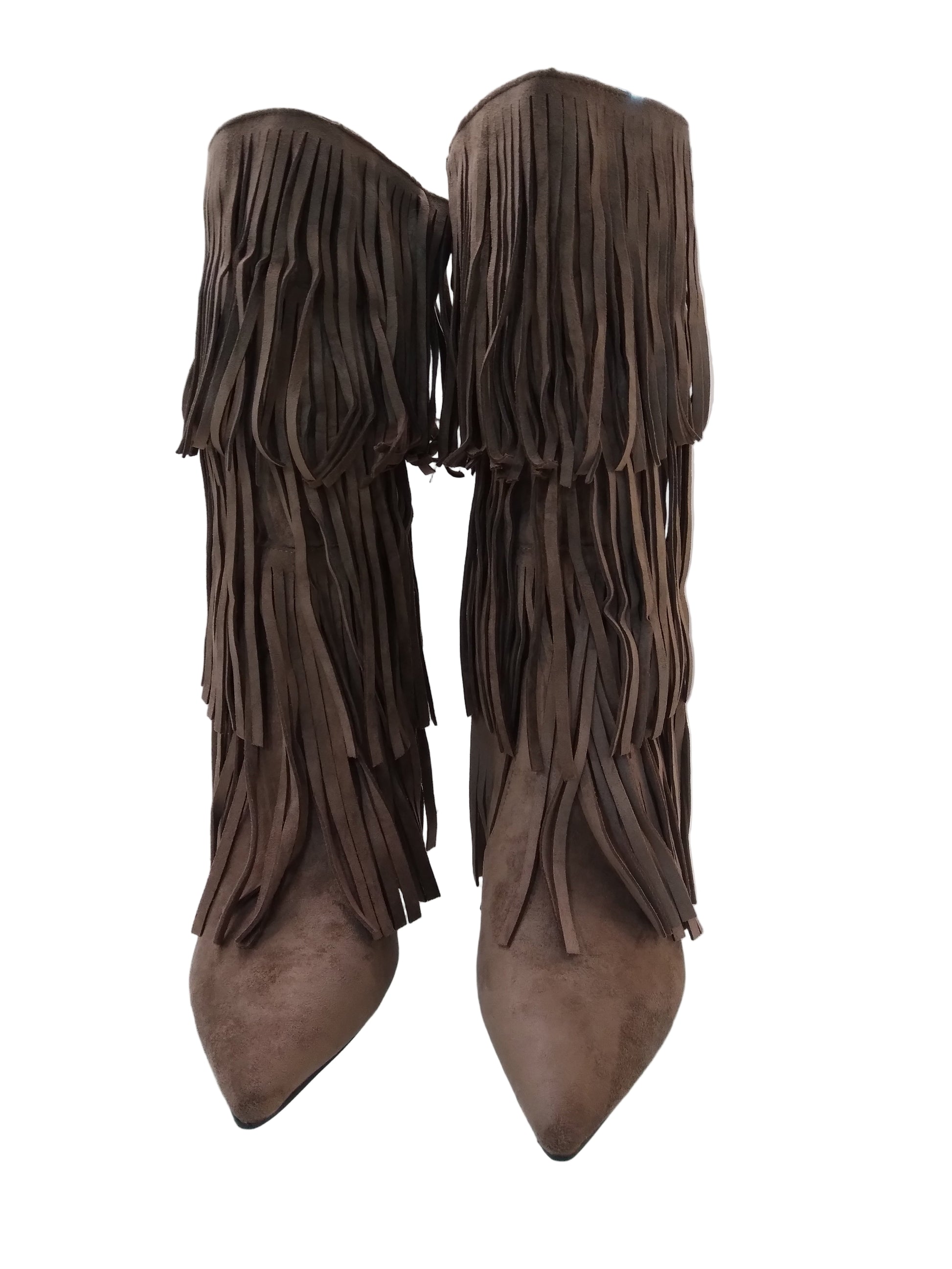 Lo Stivale è una calzatura elegante con un tacco di 10cm e frange decorative. Offre uno stile sofisticato e comodità durante le attività quotidiane. Con il suo tacco alto, dona slancio alla figura e le frange aggiungono un tocco di femminilità. Una scelta perfetta per le donne che vogliono essere comode senza rinunciare al glamour.