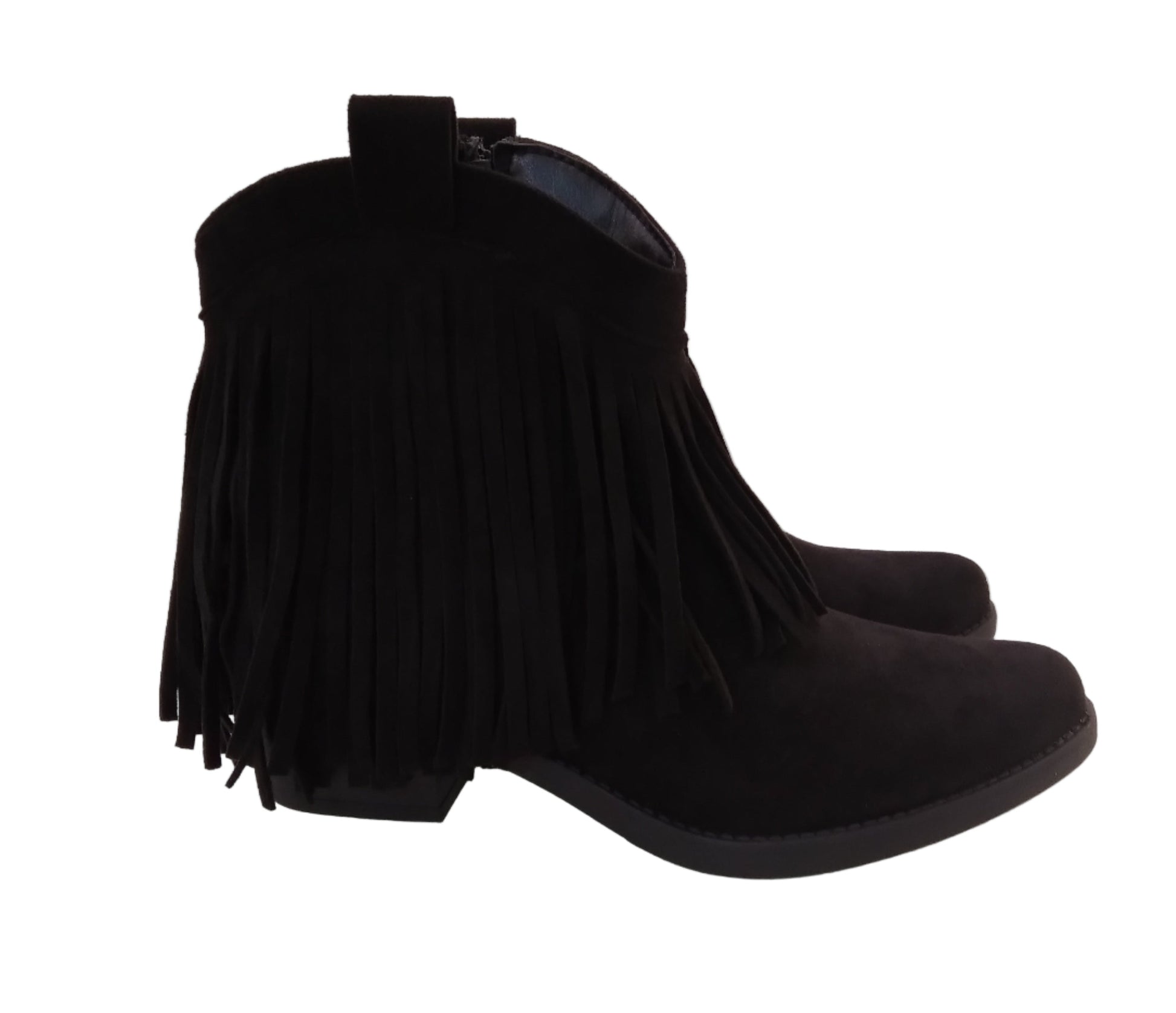 Lo stivaletto con il tacco di 5 cm e le frange è perfetto per un look elegante e moderno. Le frange aggiungono un tocco di stile, mentre il tacco di 5 cm permette di camminare comodamente. Ideale per ogni occasione e adatto a ogni piede.