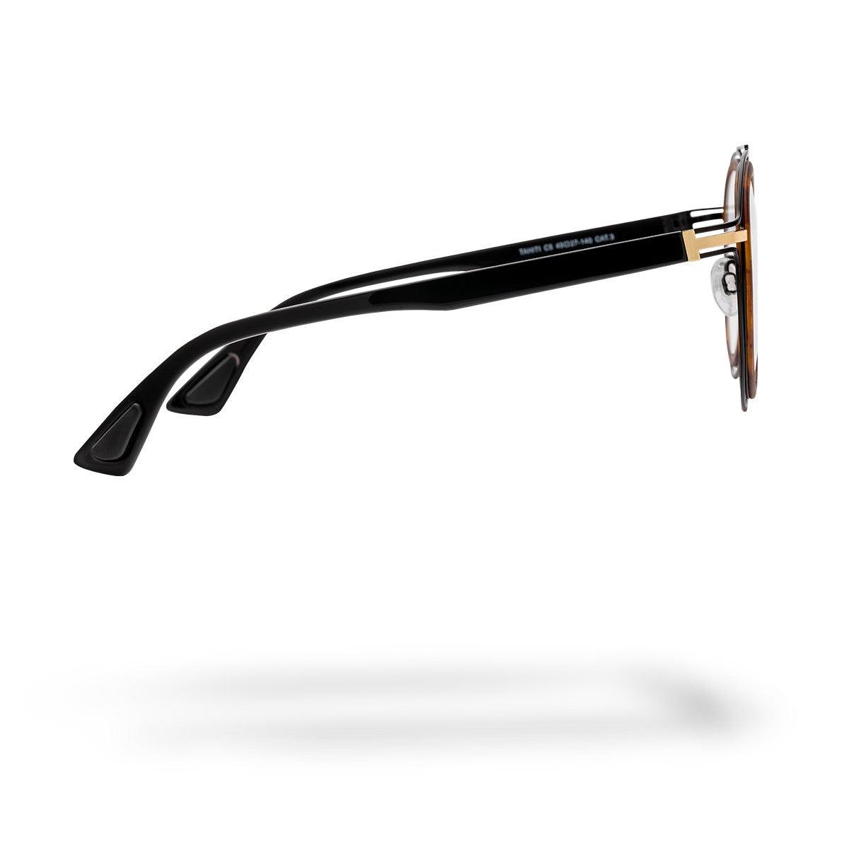 Il frontale nero lucido, dalla forma rotonda, con dettagli Havana, si abbina perfettamente alle aste nero lucido, per un look total black senza tempo. Le lenti grigie fotocromatiche si adattano alla luce, garantendo protezione e comfort. Il Tlogo oro aggiunge un tocco di luminosità raffinata al design.