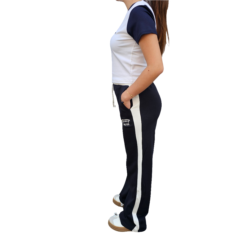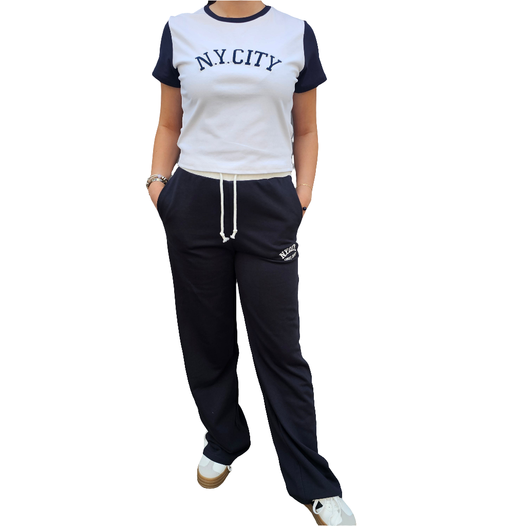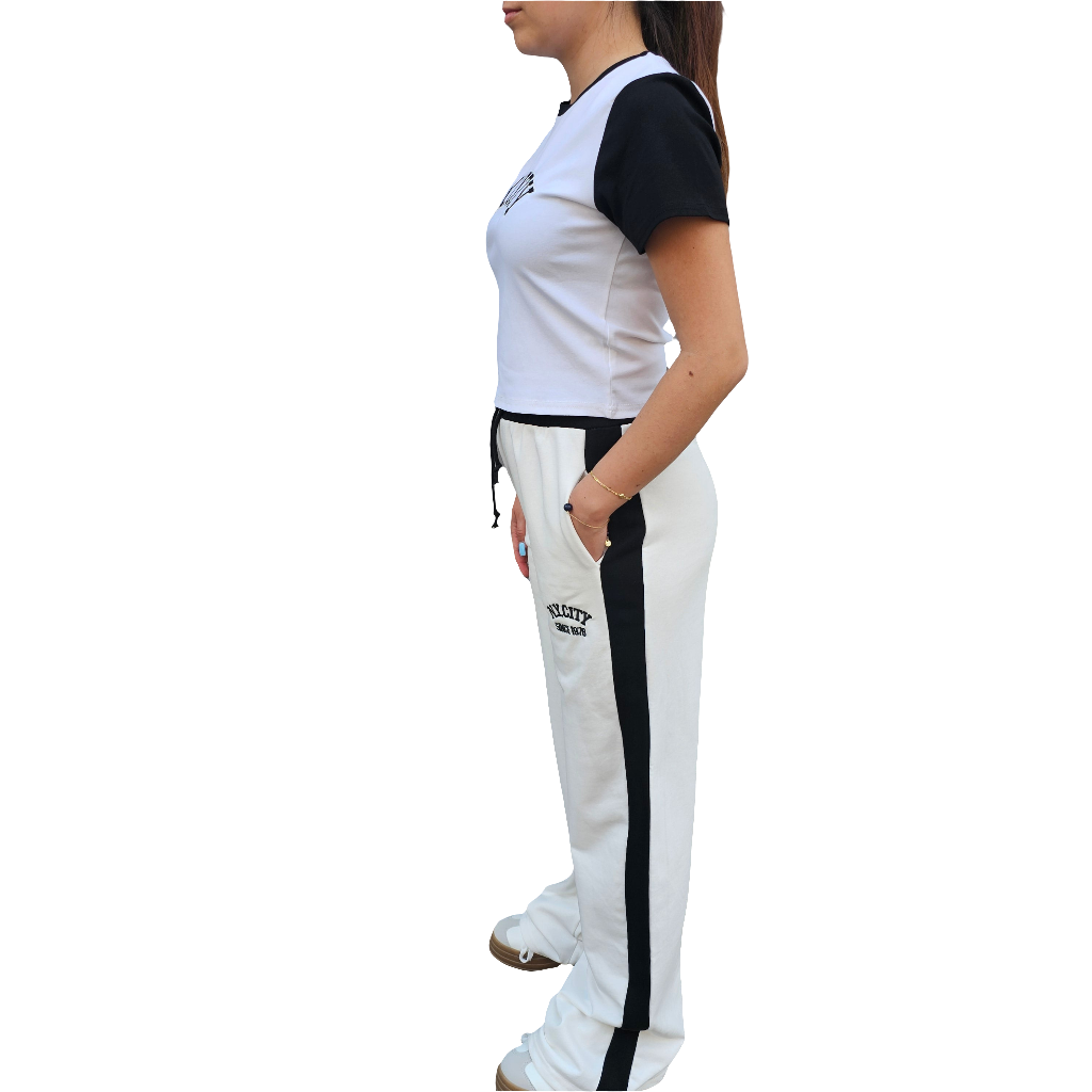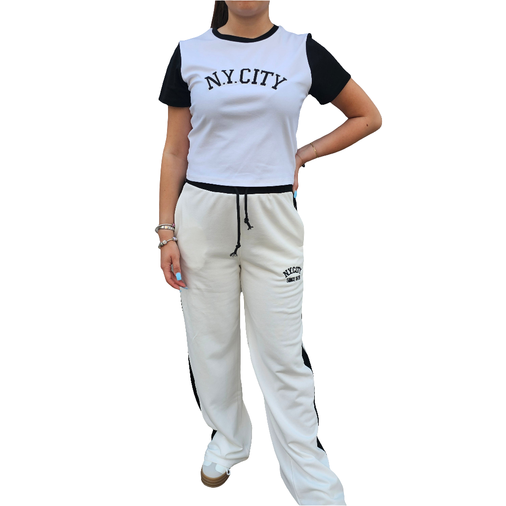 Questa tuta coordinata è perfetta per un look casual e comodo. La maglietta a mezza manica e il pantalone a zampa offrono un tocco di stile. Realizzata con materiali di alta qualità, sarà sicuramente un must-have nel tuo guardaroba.