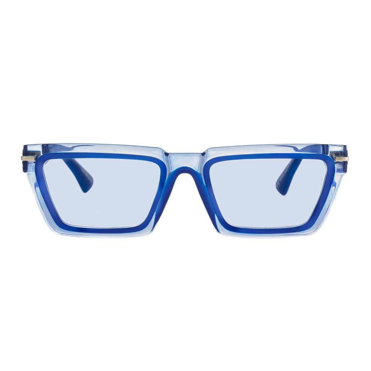 Il modello Wynwood C38 affascina con un frontale in crystal blu che cattura la luce, creando un effetto luminoso ed elegante. Il top e cerchio blu completano l’effetto monocolore, mentre le aste in crystal blu proseguono il gioco di continuità visiva, per un look impeccabile e moderno. La struttura elegante e minimale offre un design sofisticato che si adatta perfettamente a qualsiasi occasione.