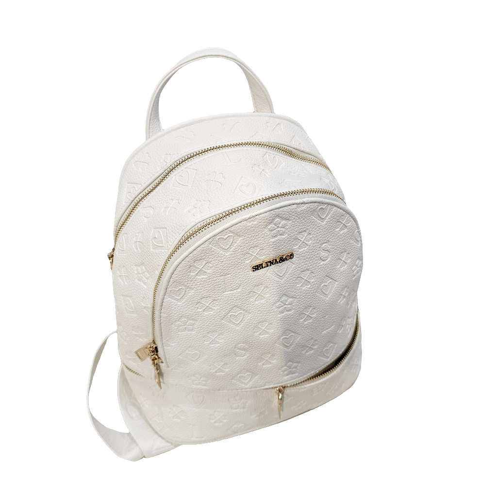Questo zaino SELINA è perfetto per le donne che cercano uno zaino elegante e funzionale. Con una stampa logo unica e realizzato in ecopelle di qualità, offre quattro zip per tenere tutto al sicuro. Ideale per un look di tendenza senza rinunciare alla praticità.